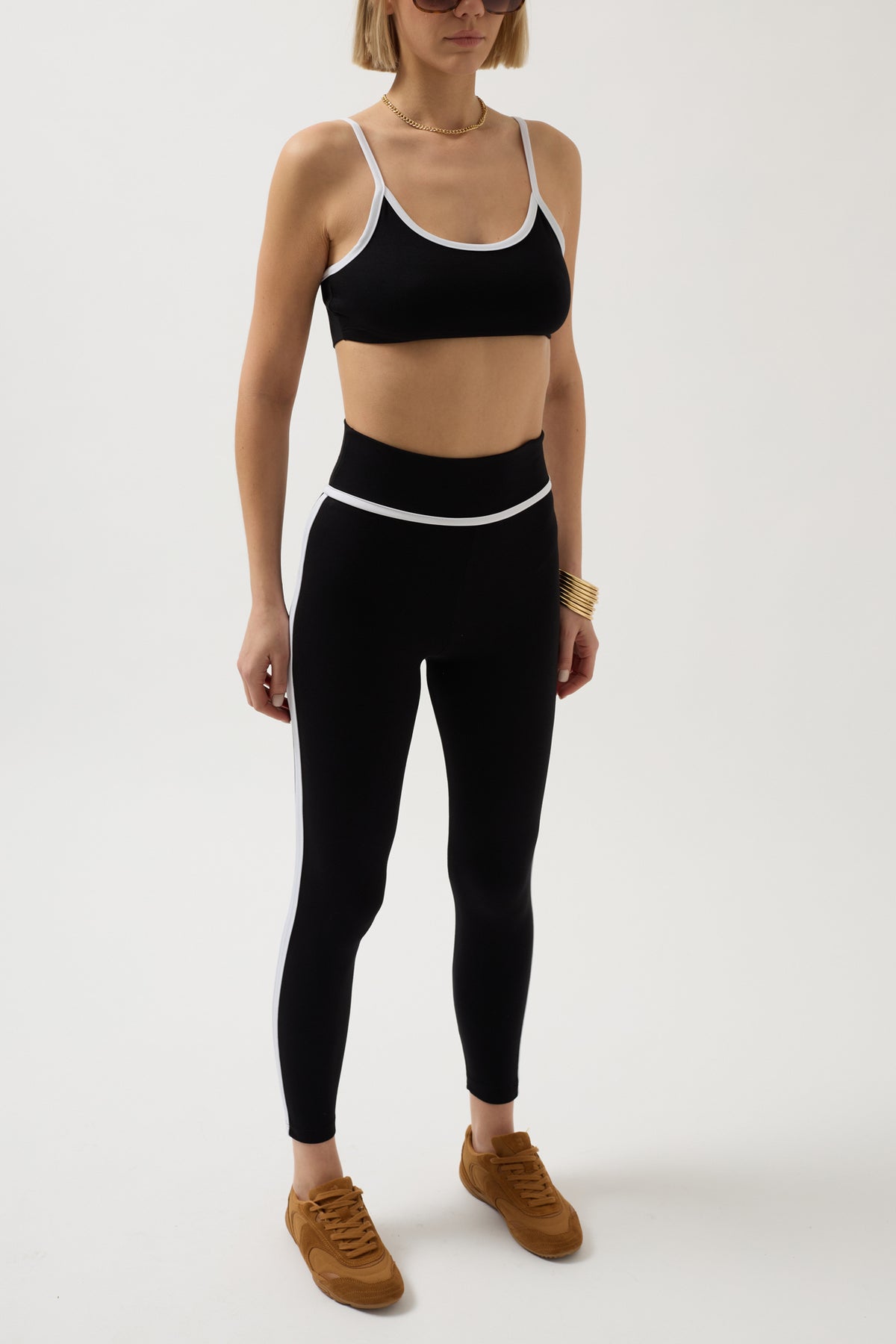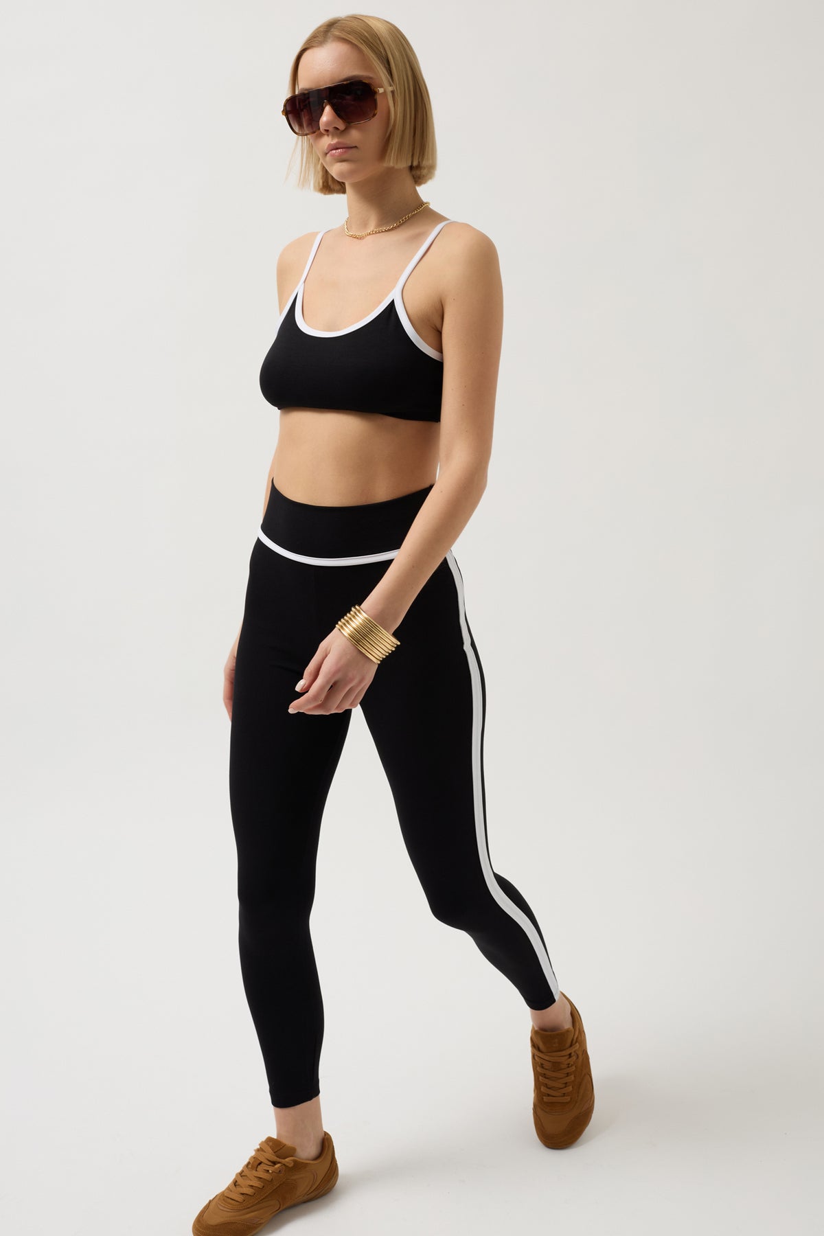 Kontrast Şerit Detaylı, Likralı Ve Esnek Kumaşlı, Yüksek Bel, Spor Tayt