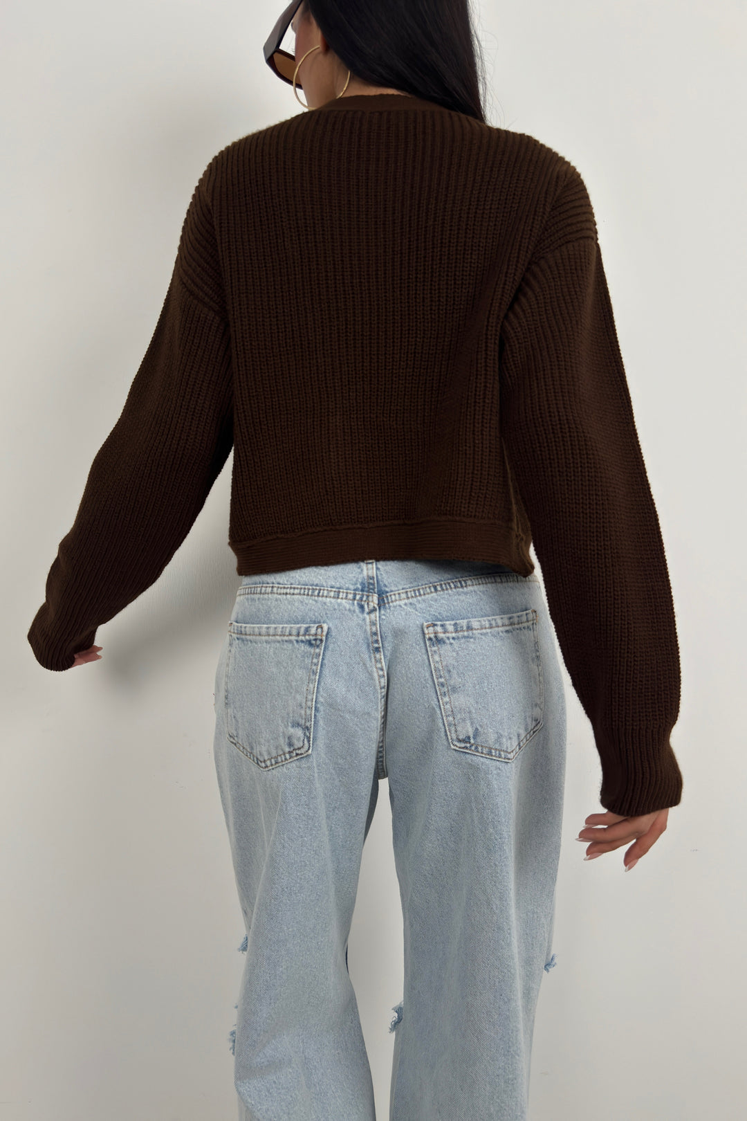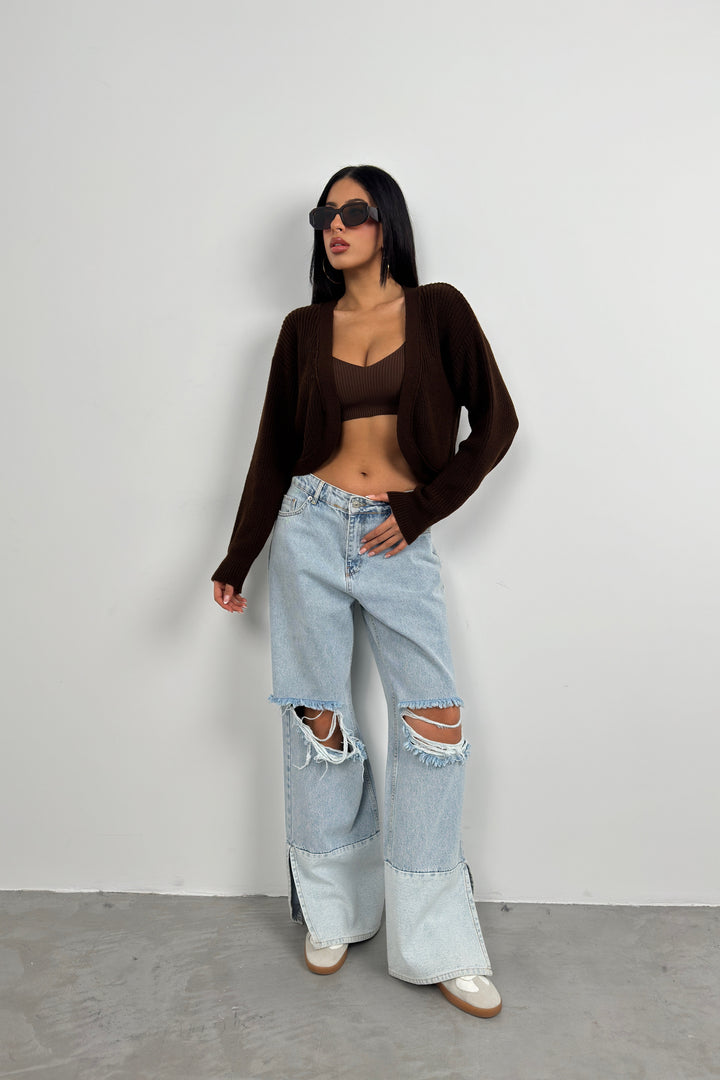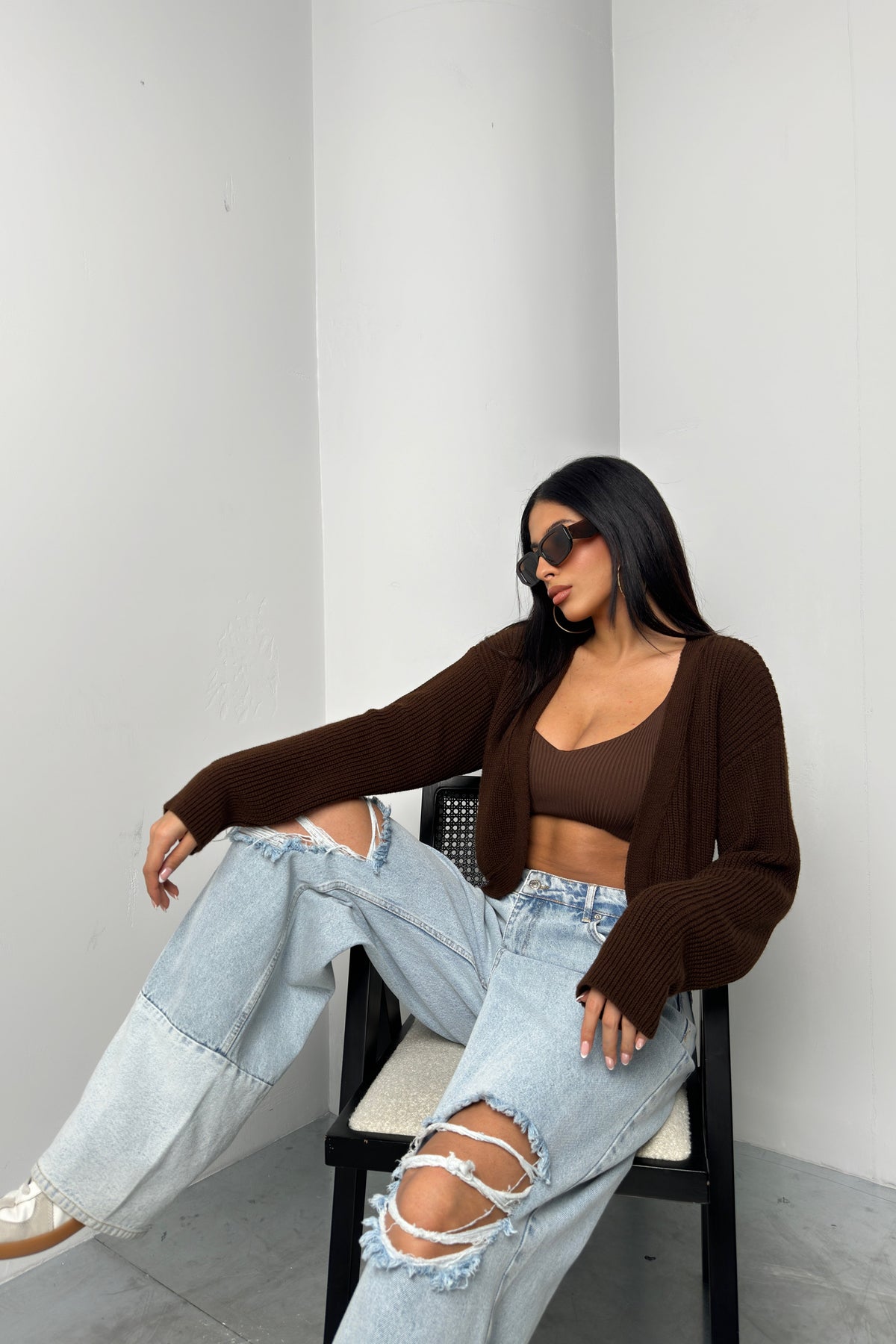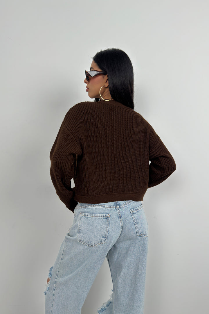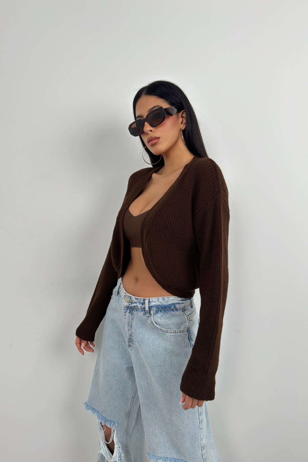 Oval Kapamalı Biyeli Crop Triko Hırka