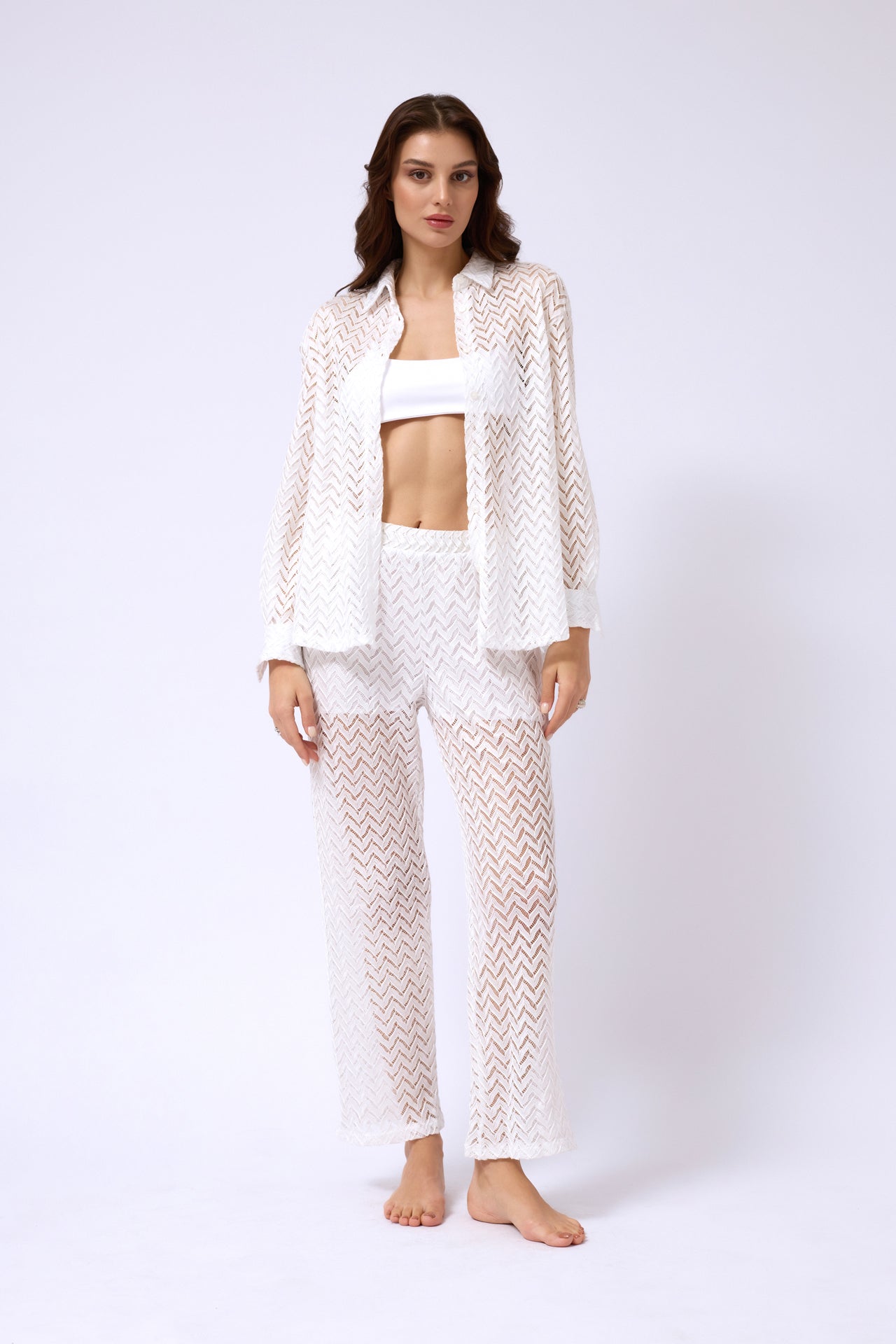 Transparan, Manşet Detaylı Gömlek Beli Lastikli, AstarlI, Transparan Pantolon
