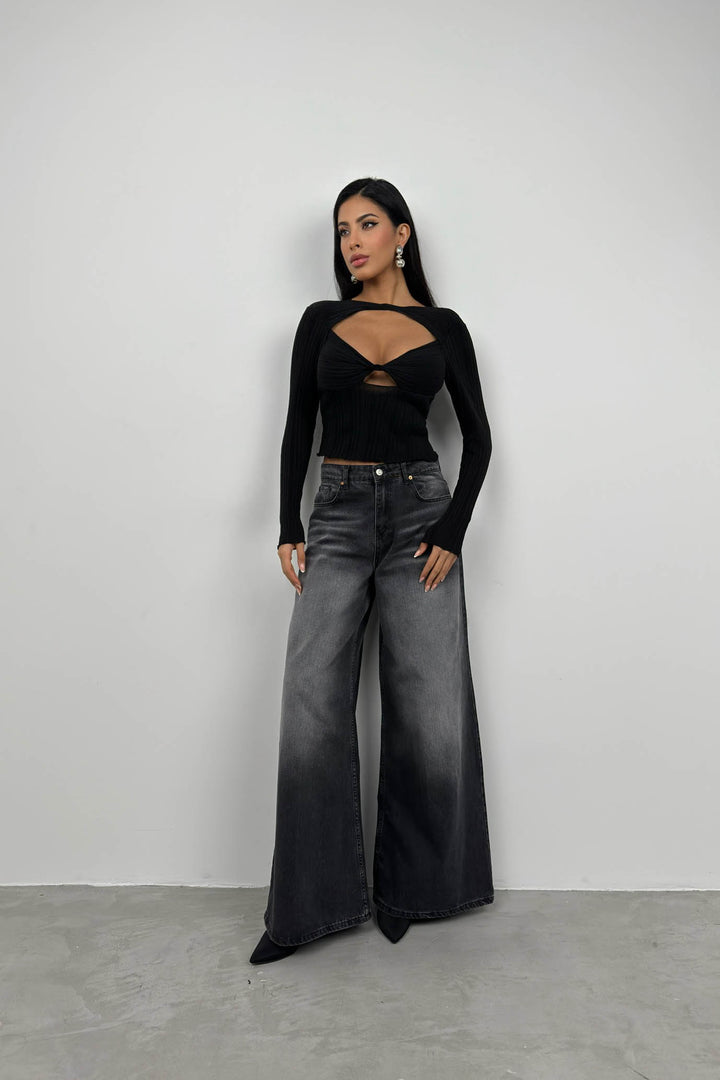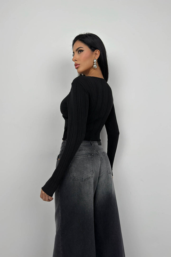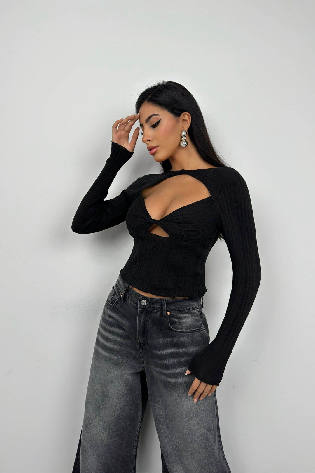 Büzgülü, Cutout, Uzun Kollu, Crop, Dekolteli Bluz