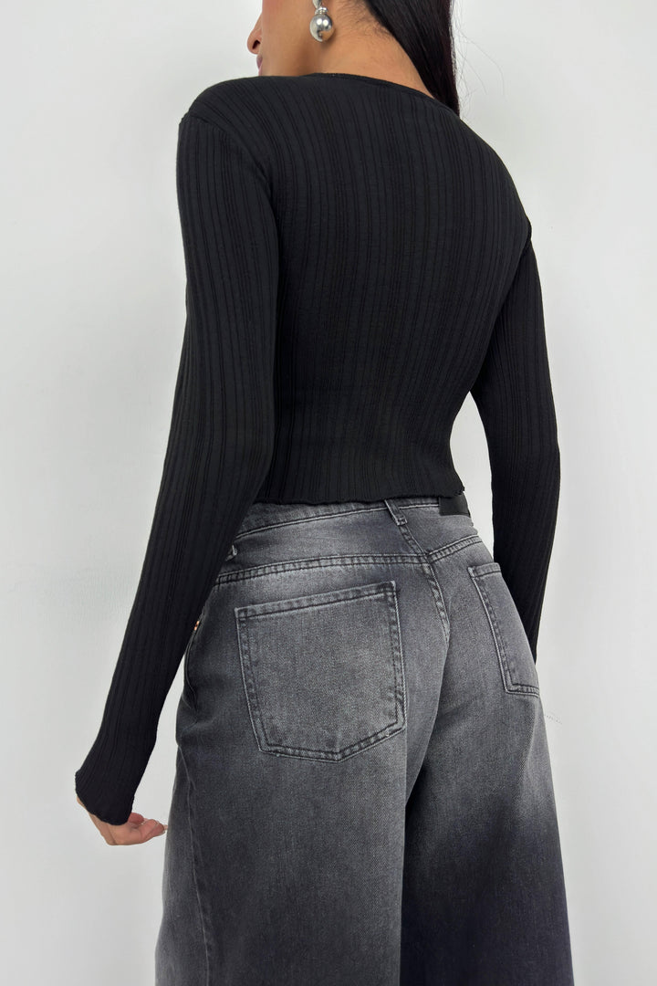 Büzgülü Siyah Cutout Bluz