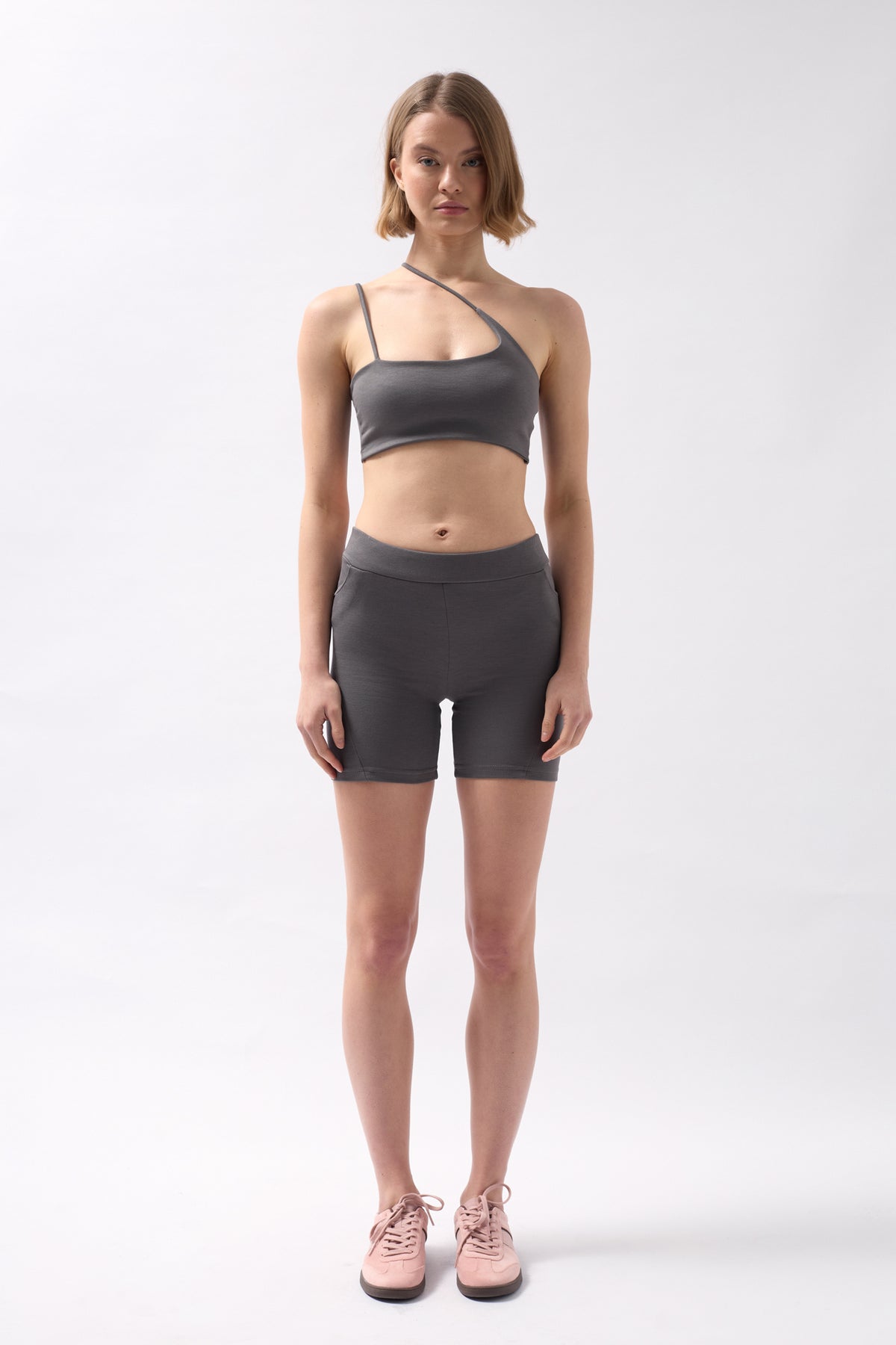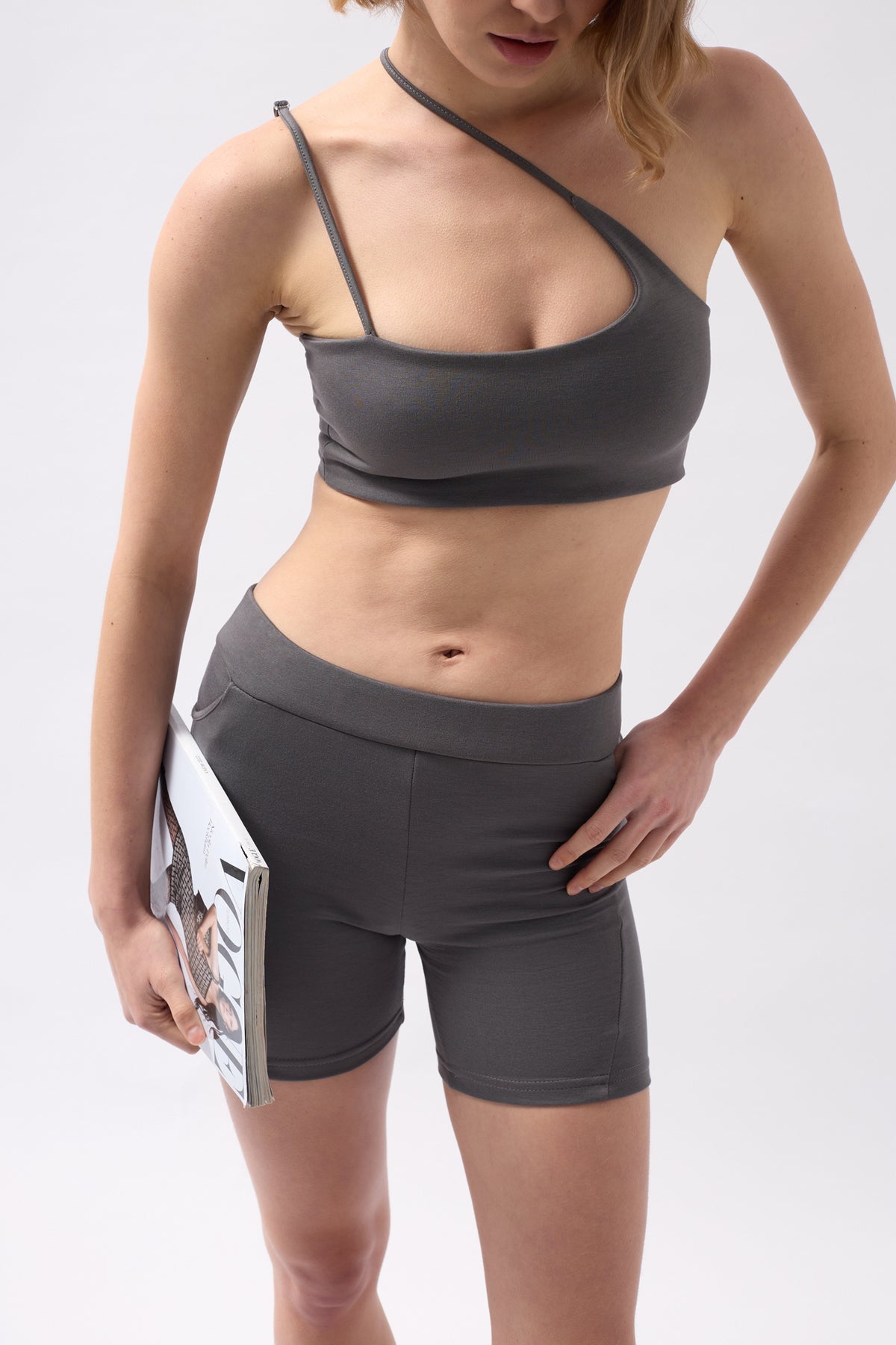Likralı Ve Esnek Kumaşlı, İnce Askılı, Crop Spor Bluz