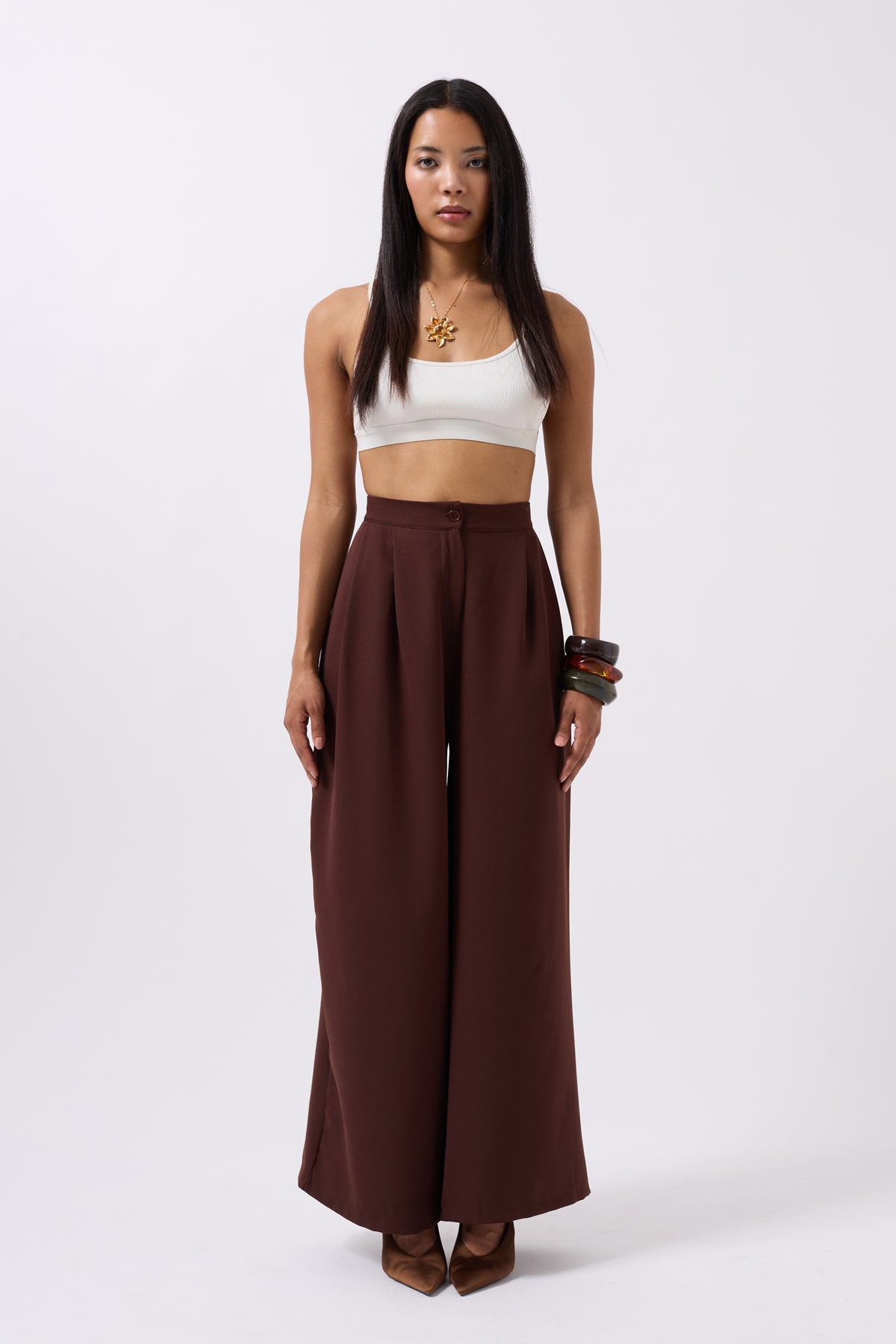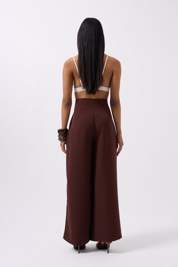 Düğmeli, Çift Cepli, Yüksek Bel Palazzo Pantolon