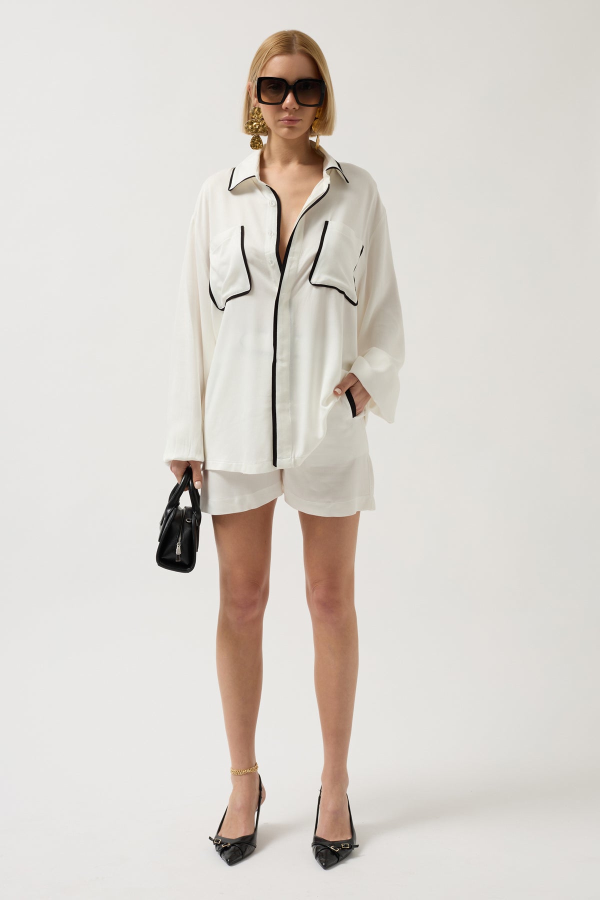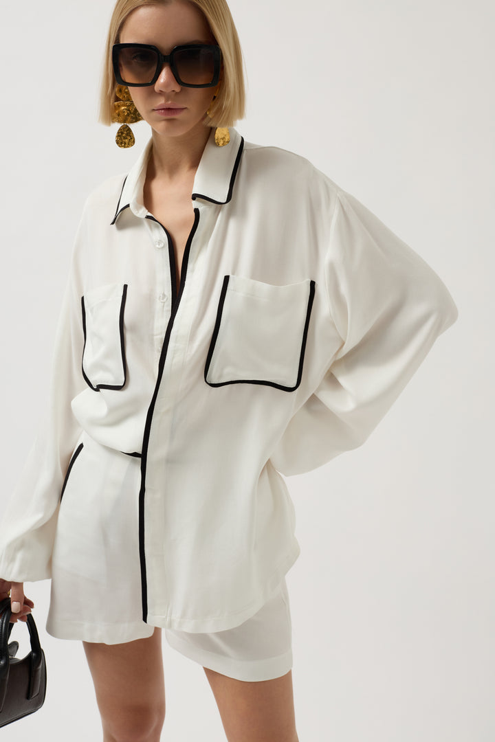 Çift Renk, Biyeli, Cepli, Manşetli, Oversize Gömlek