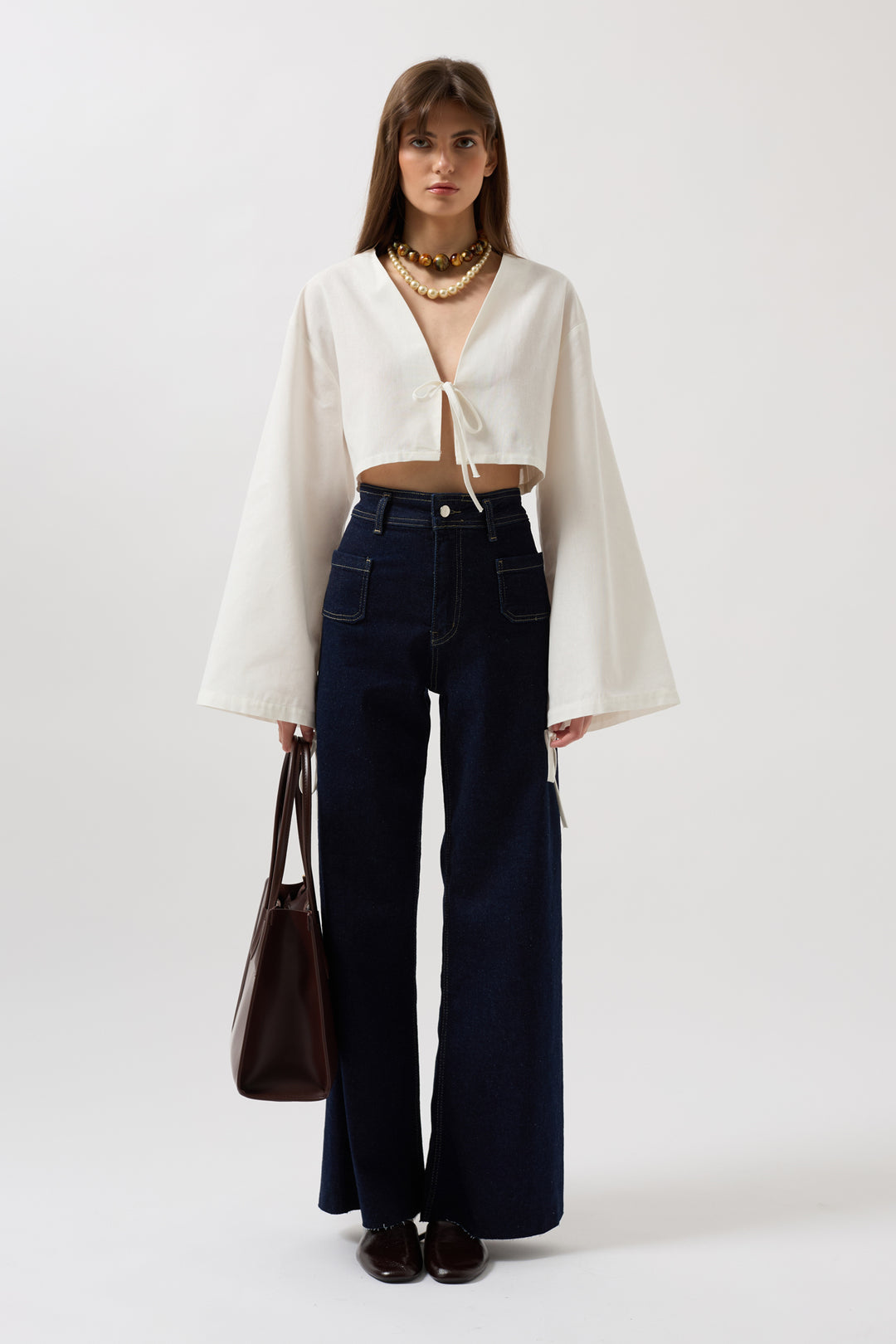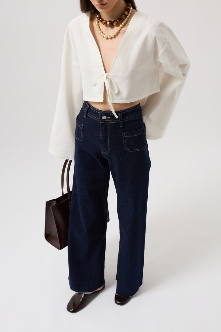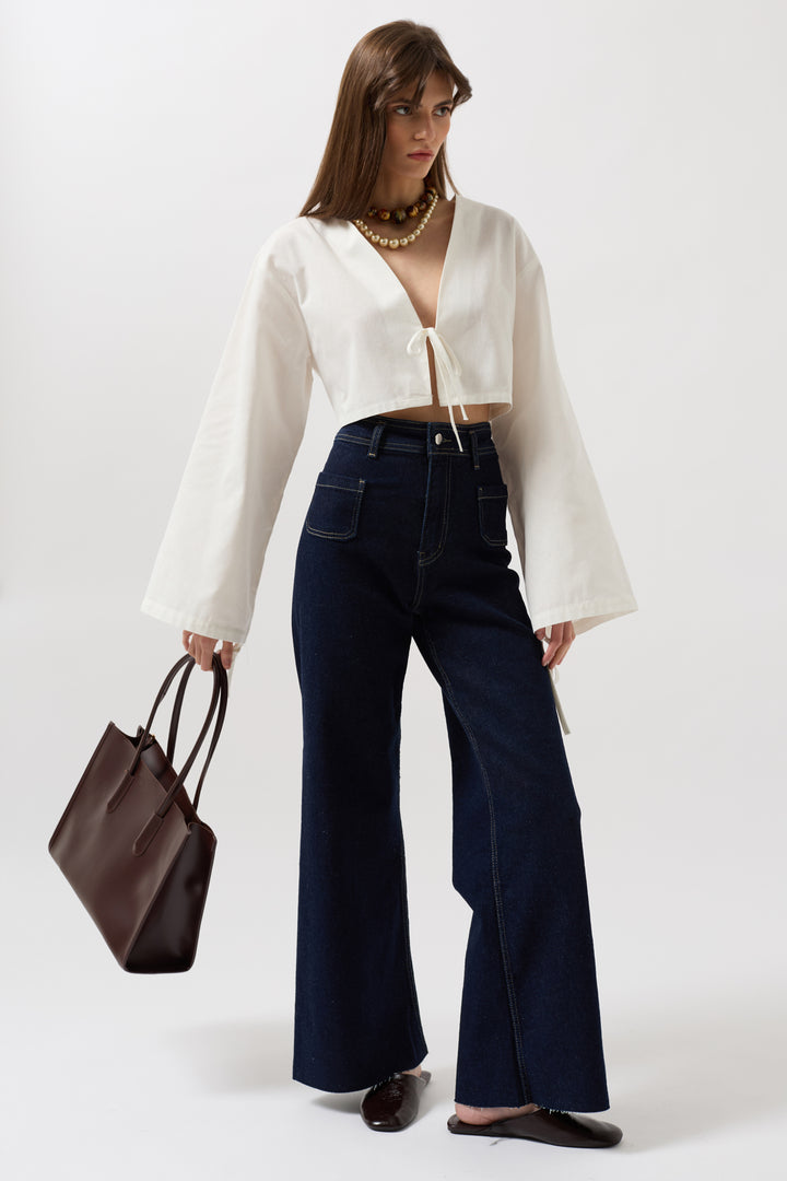 Dört Cepli, Düğmeli Ve Fermuarlı, Önü Ters Cepli, Geniş Paça Wide Leg Denim Pantolon
