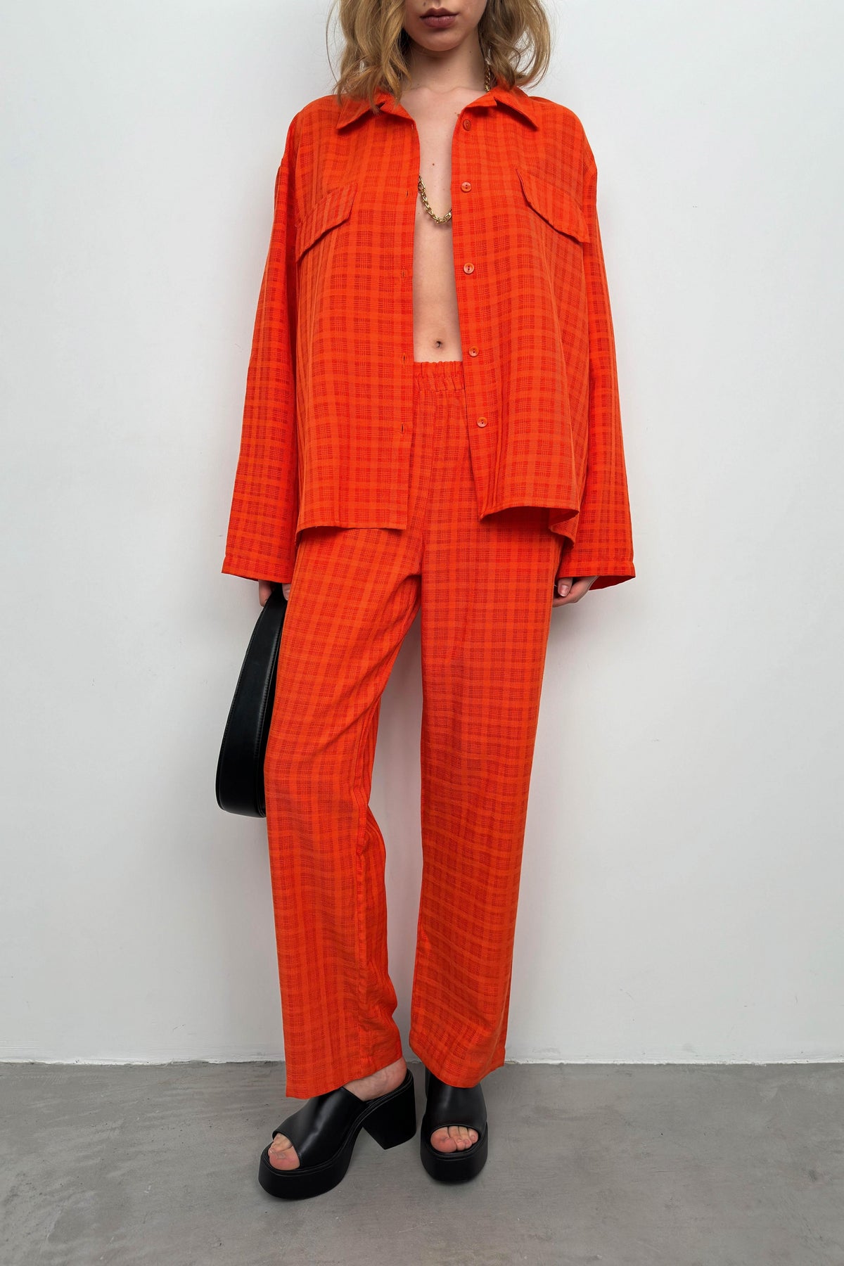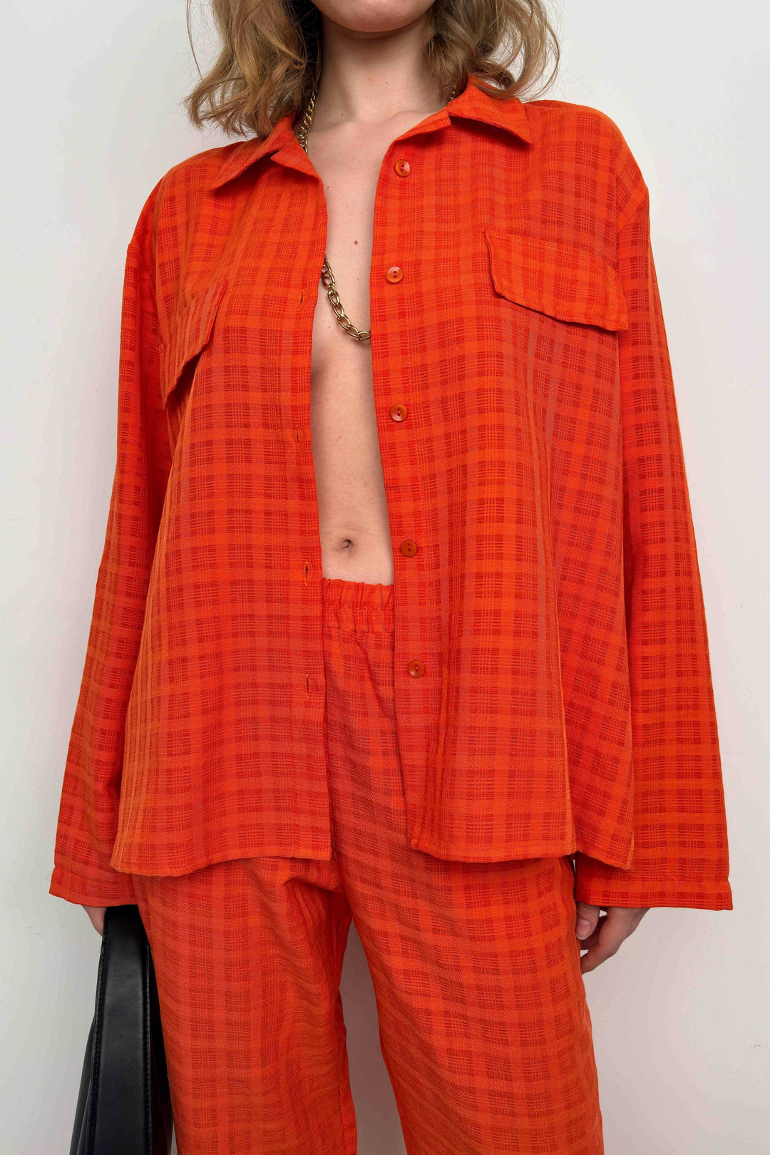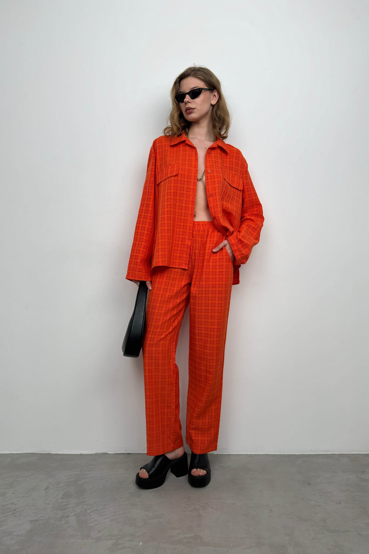 Cepli Turuncu Gömlek Pantolon İkili Takım