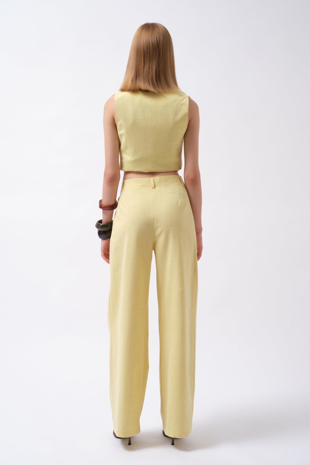 Çift Pileli Palazzo Sarı Pantolon