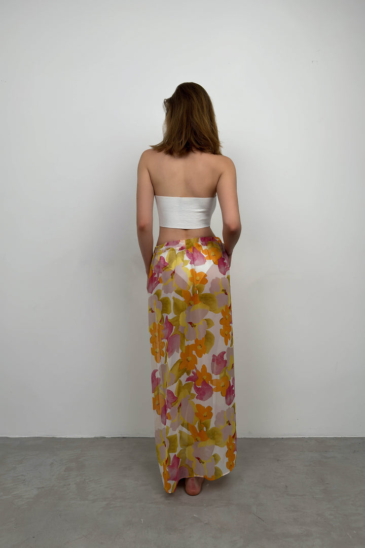Çift Yırtmaçlı Desenli Renkli Pareo