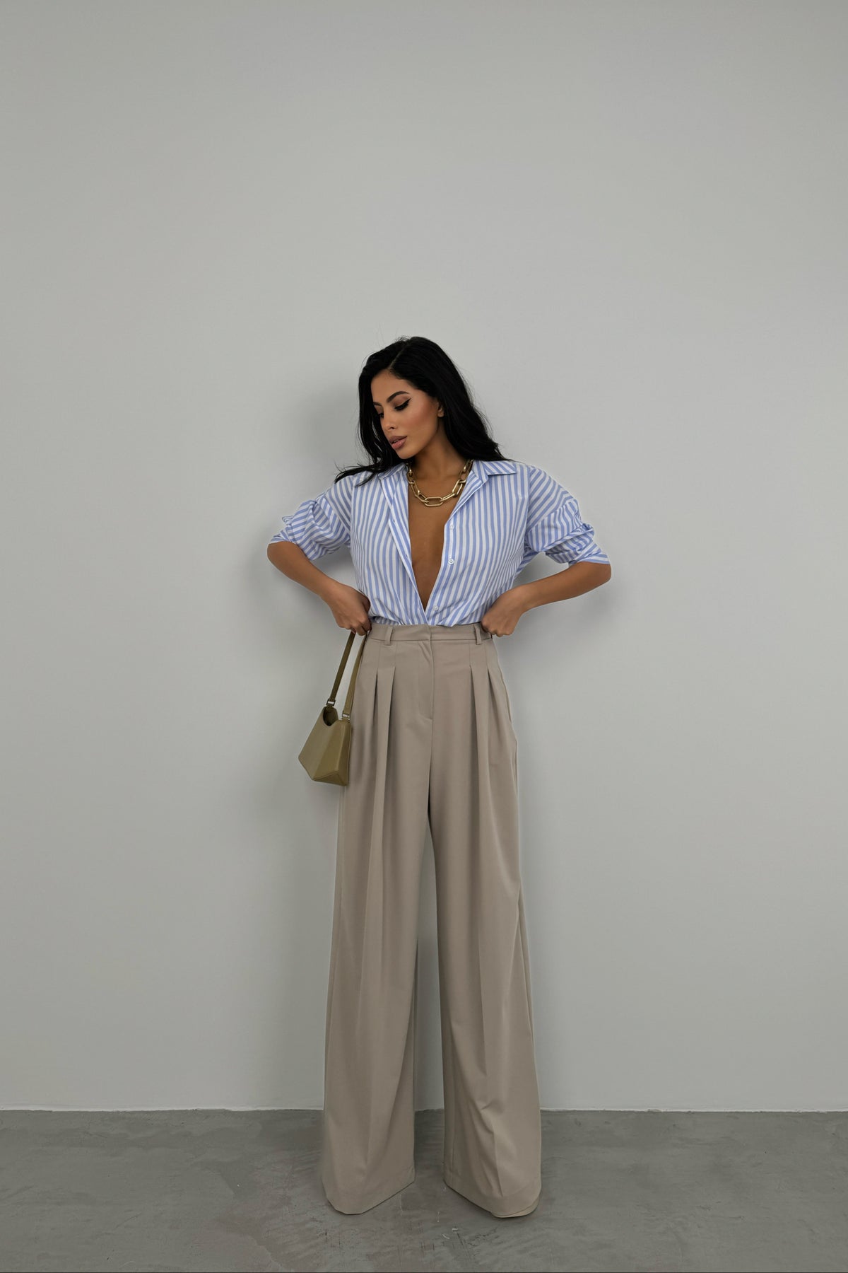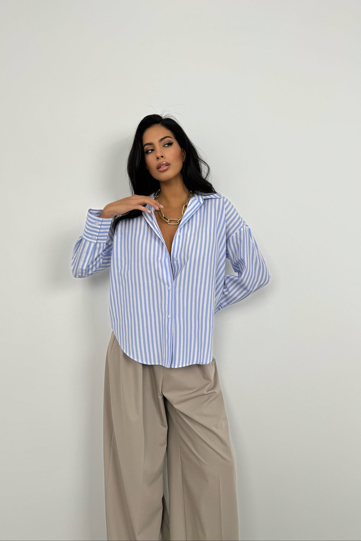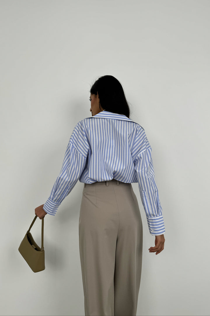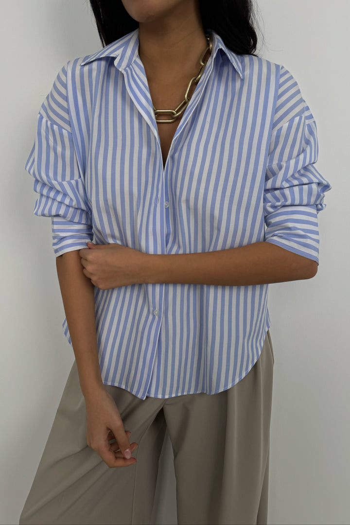 Uzun Kollu, Çizgili, Gömlek Yaka, Önü Düğmeli, Normal Boy, Oversize, Gömlek