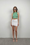 Mid Weight, Slim Fit, Bisiklet Yaka, Crop, Kolsuz, Çizgili, halter yaka crop top