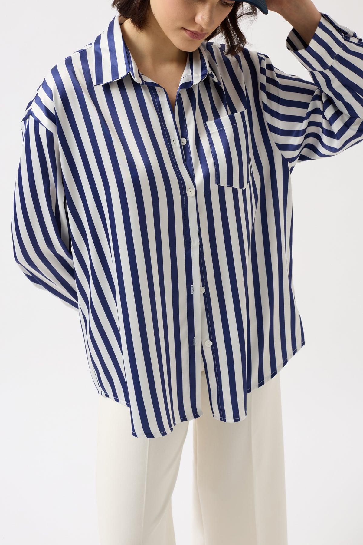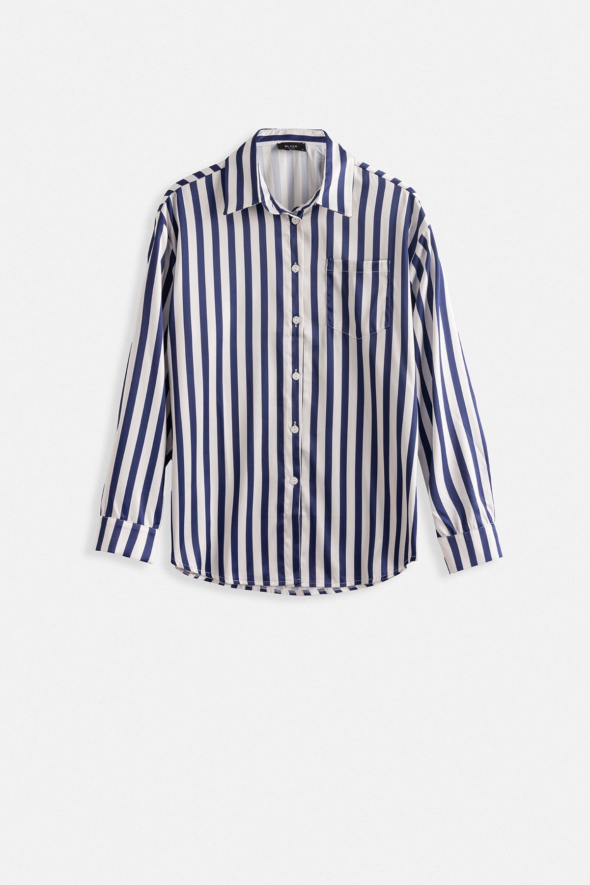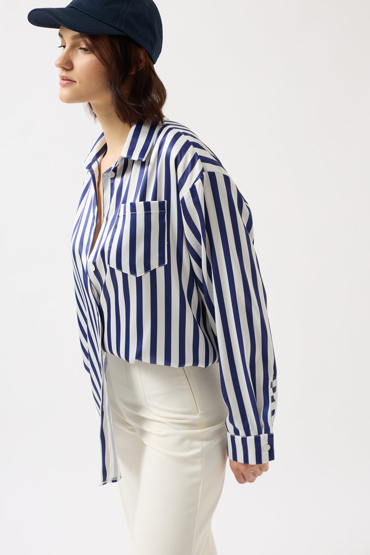 Çizgili Saten Lacivert Gömlek