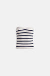Çizgili Straplez Dokulu Beyaz Kahverengi Bluz