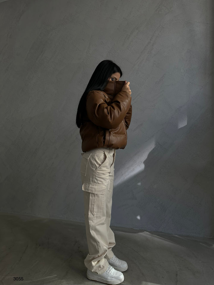Deri Taba Şişme Mont