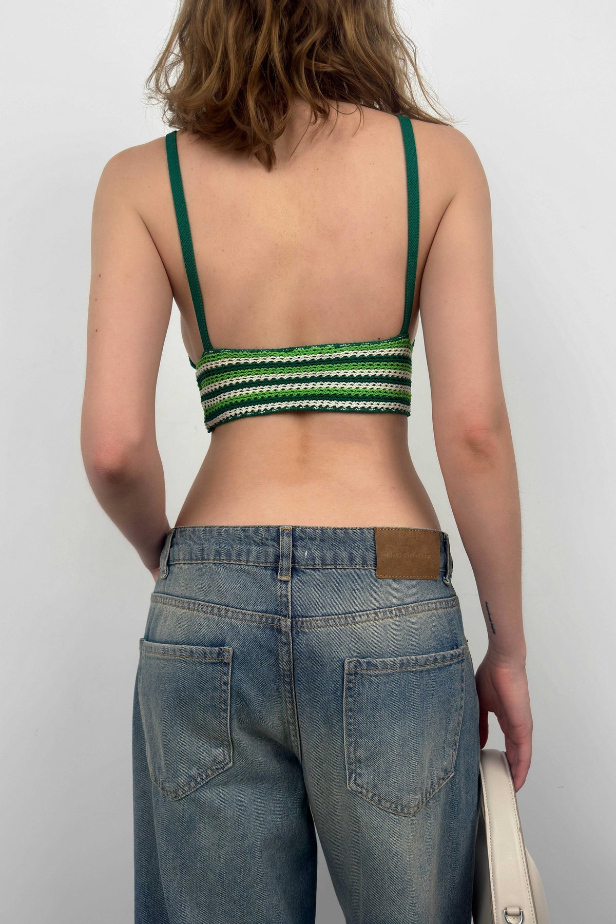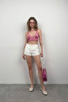 Kalın Askılı, Üçgen Form, Crop, Triko Örgü, Bra, Büstiyer