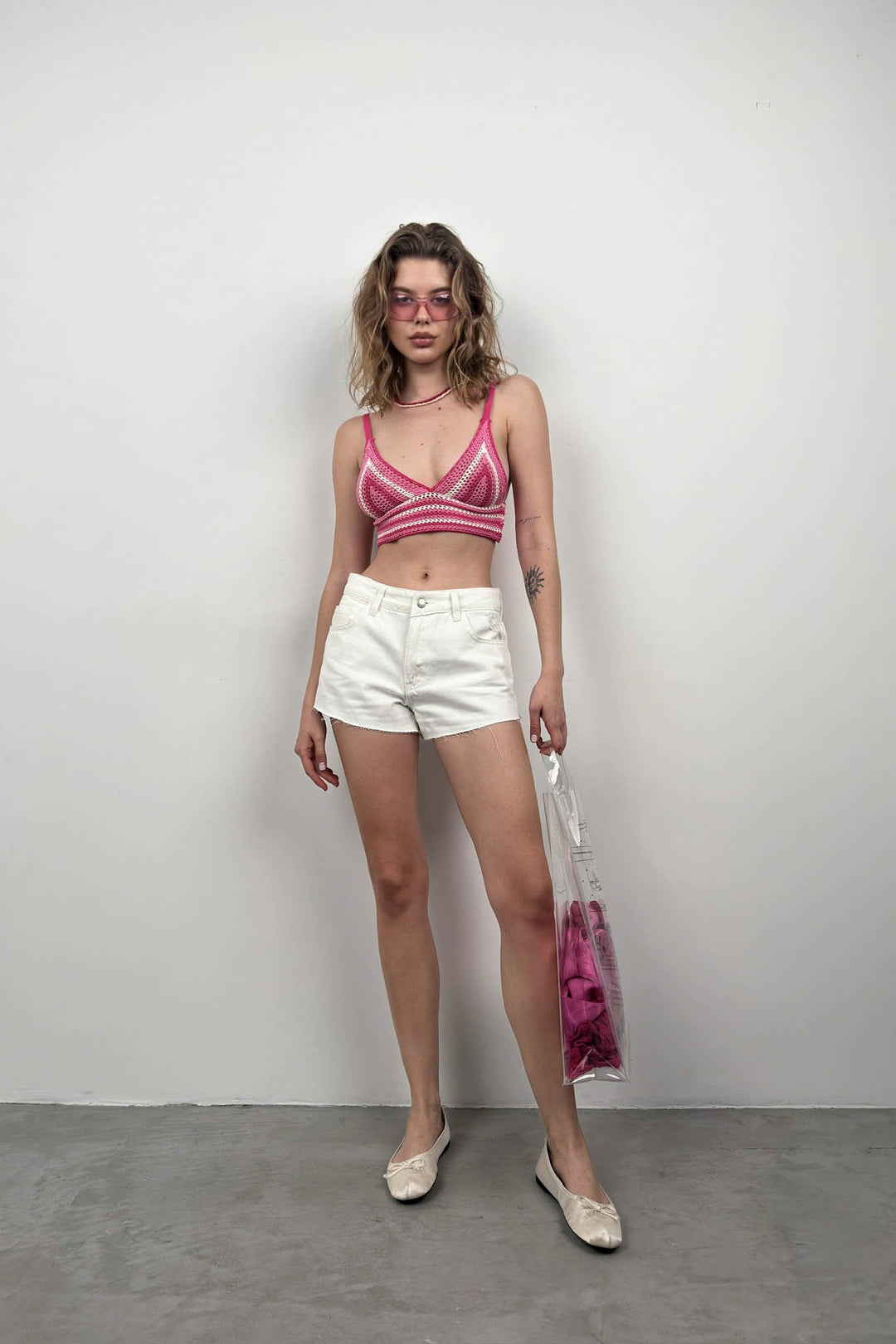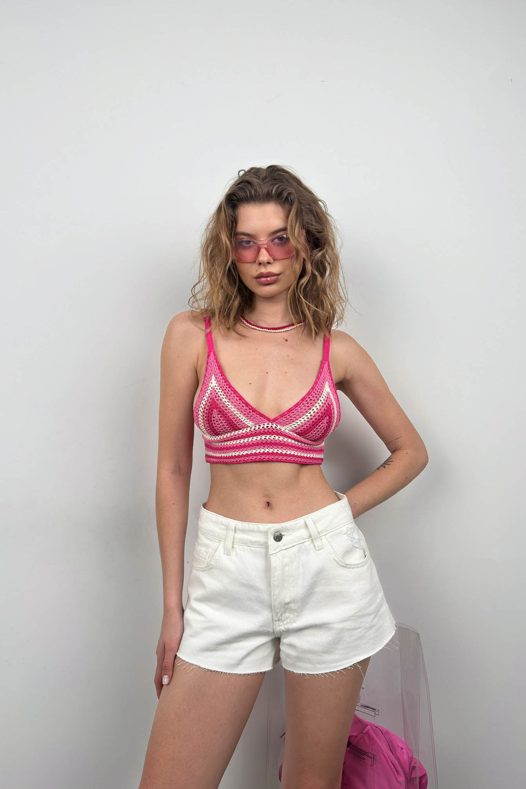 Desenli Örgü Pembe Crop
