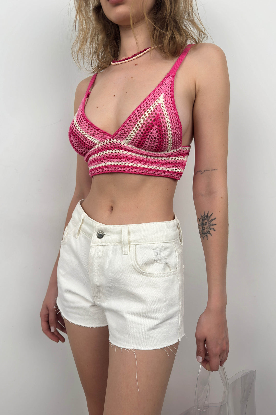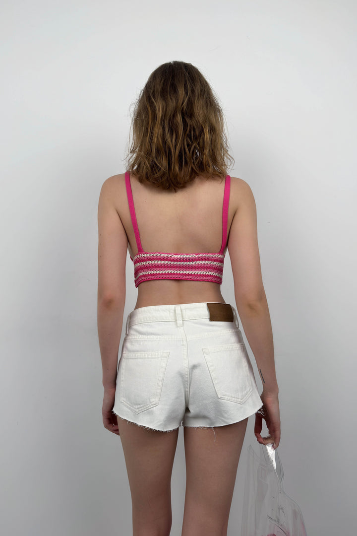 Kalın Askılı, Üçgen Form, Crop, Triko Örgü, Bra, Büstiyer