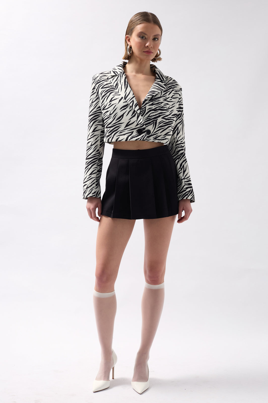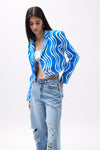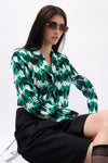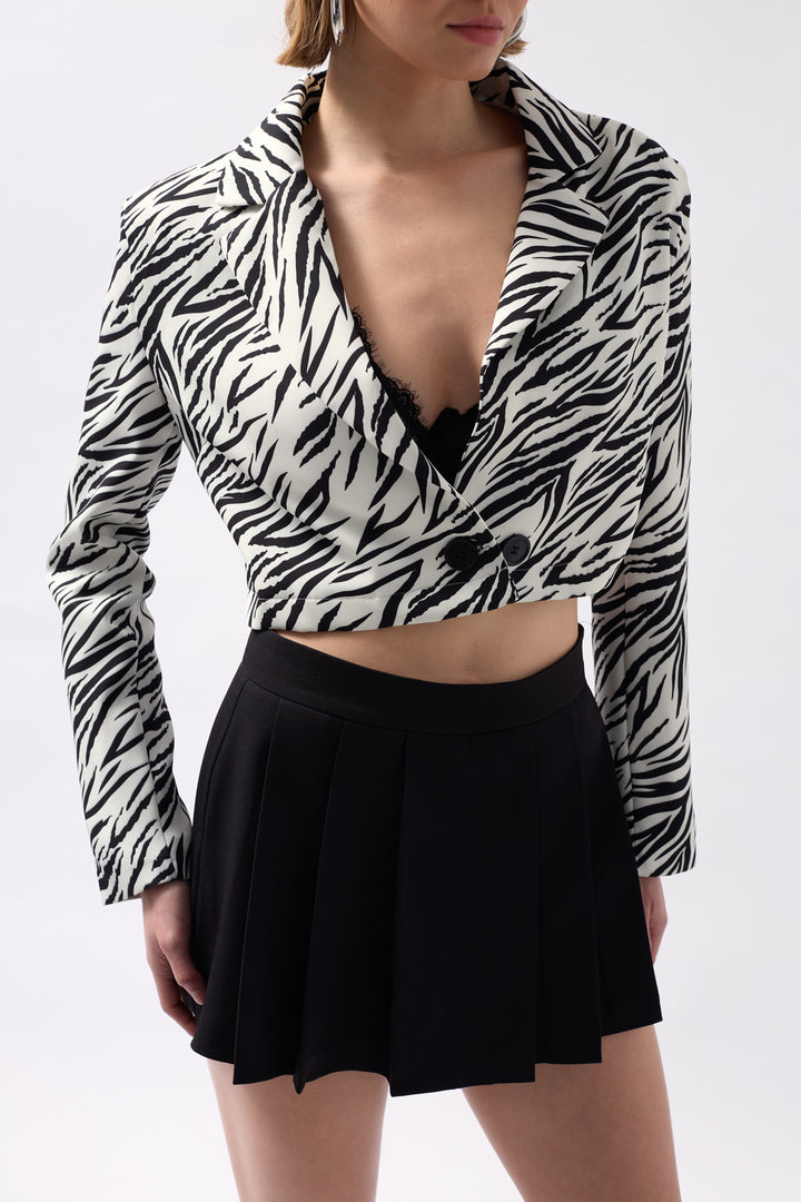 Desenli, Simetrik Görünümlü, Katlamalı Yaka, Tek Düğmeli, Crop, Blazer Ceket