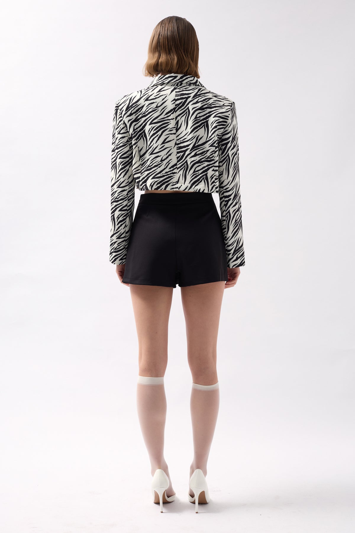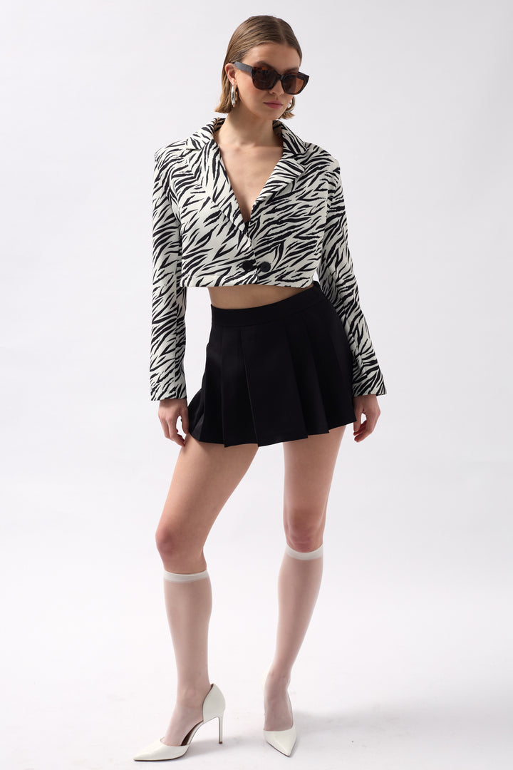 Desenli Siyah Crop Ceket