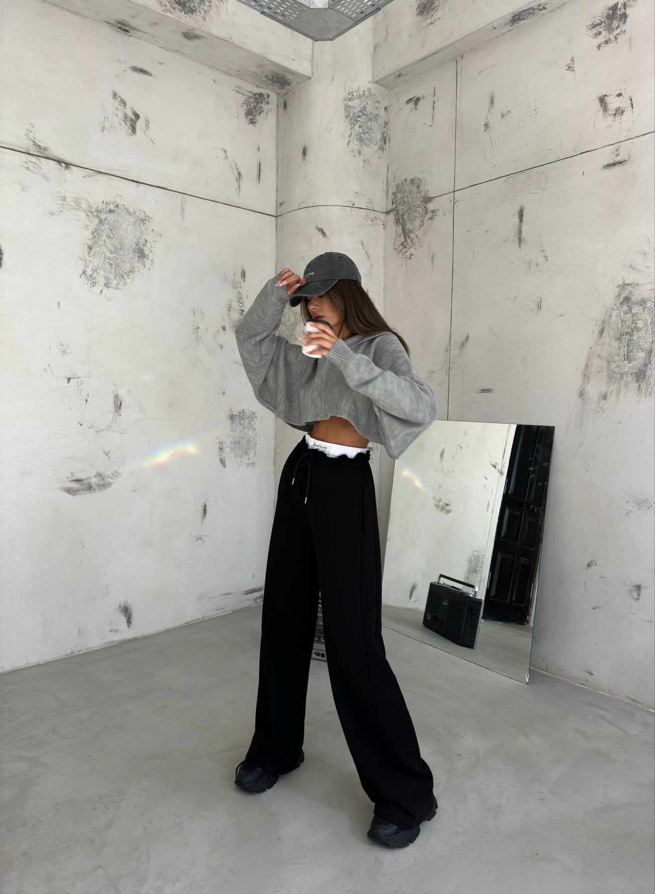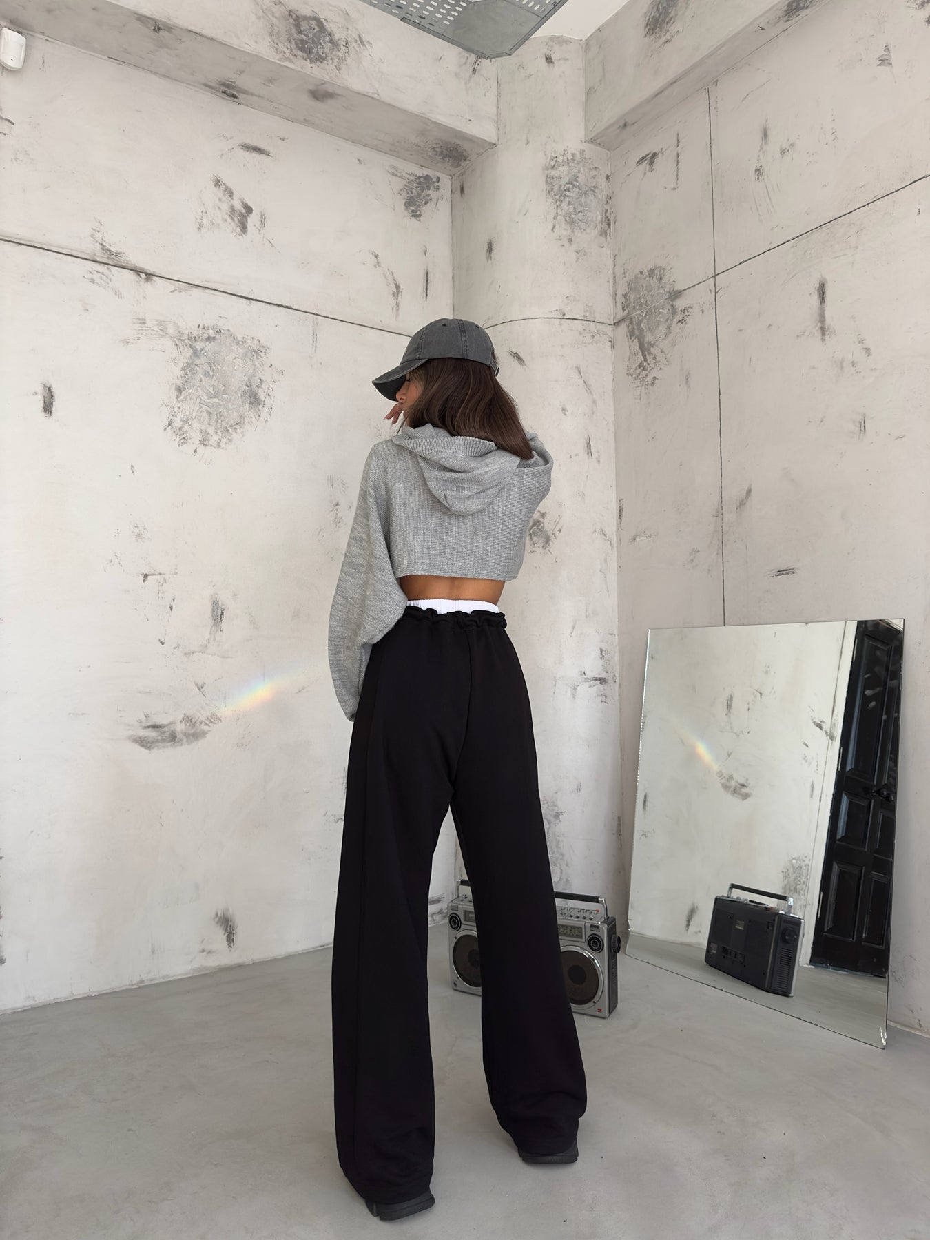 Dikiş Detay Bol Paça Siyah Eşofman Altı
