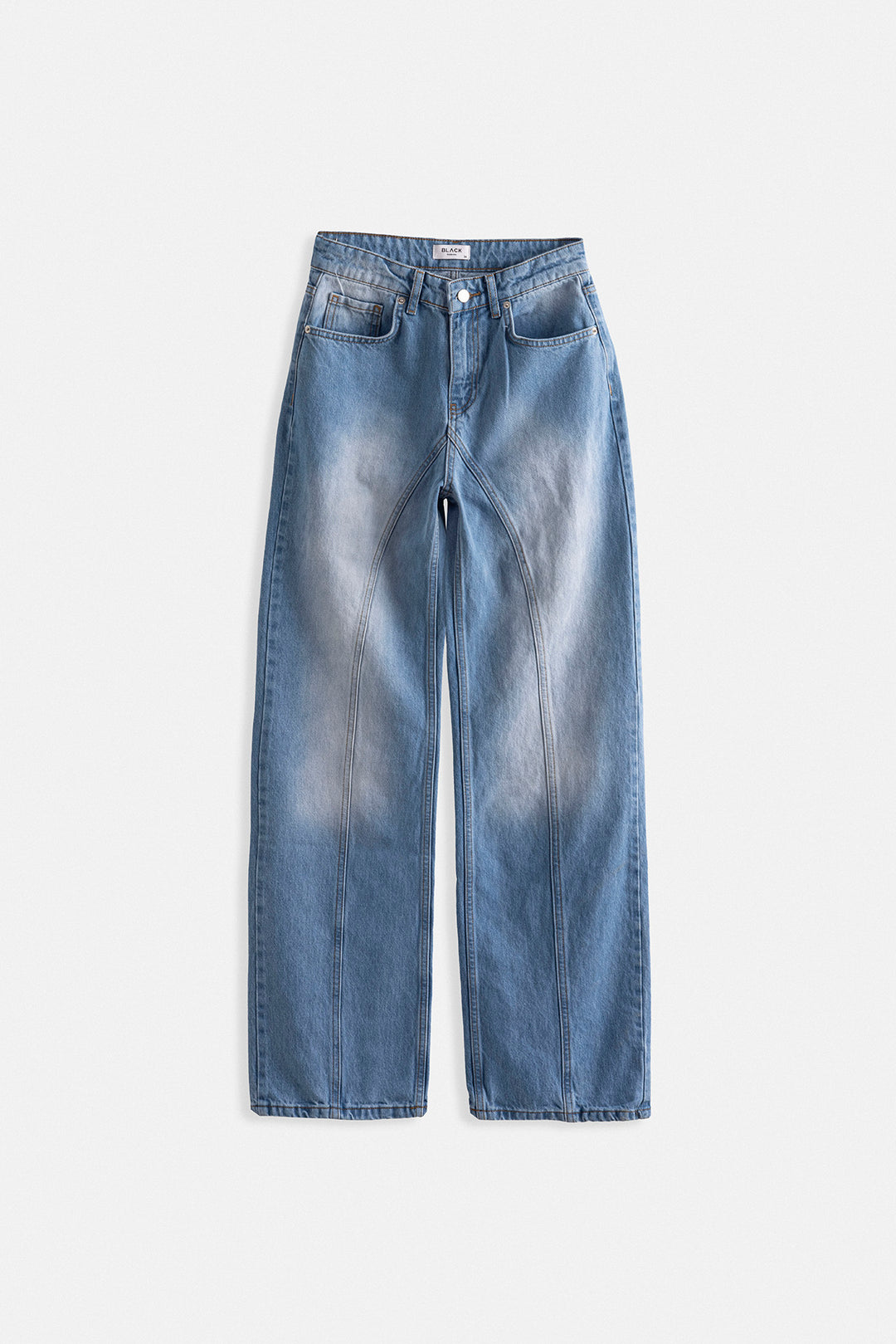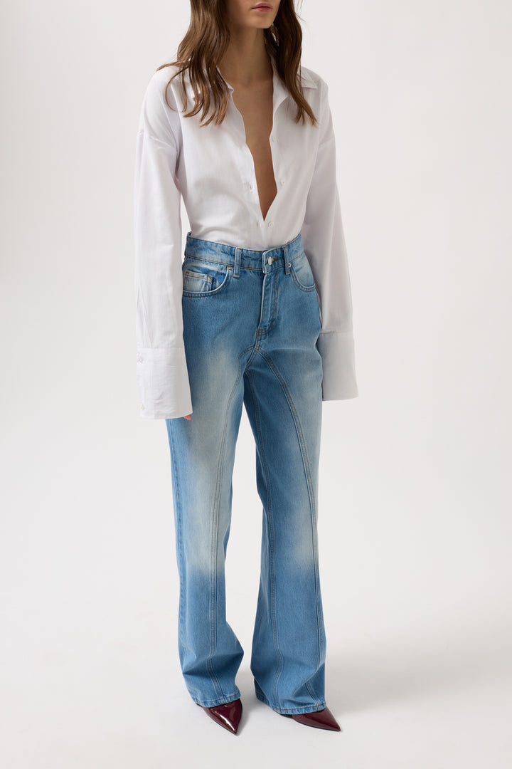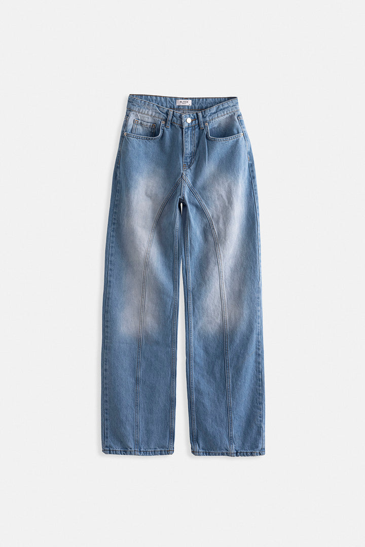 Dikiş Detay Geniş Paça Mavi Jean
