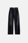 Ön Tarafı Dikiş Detaylı, Beş Cepli, Deri Jakronlu, Düğmeli Ve Fermuarlı, Wide Leg Jean