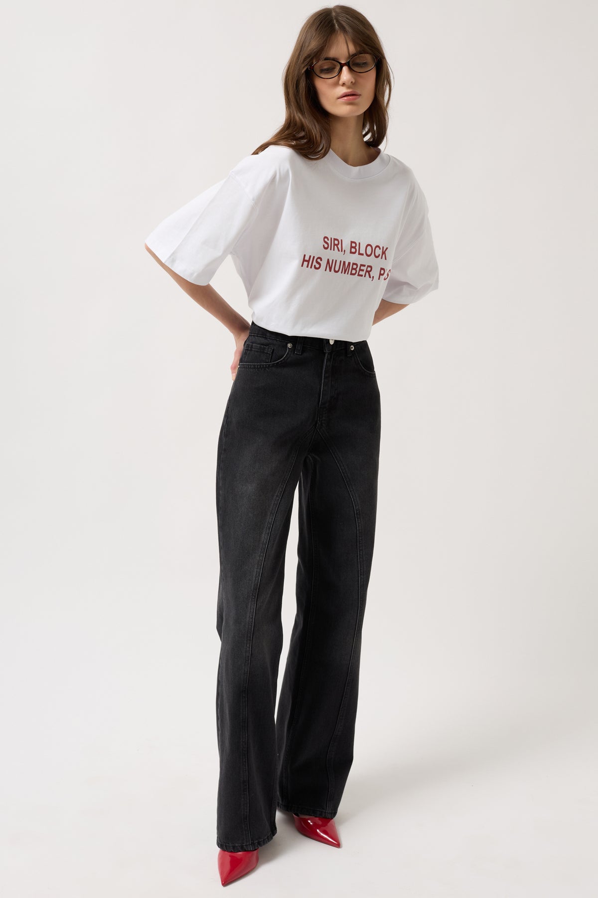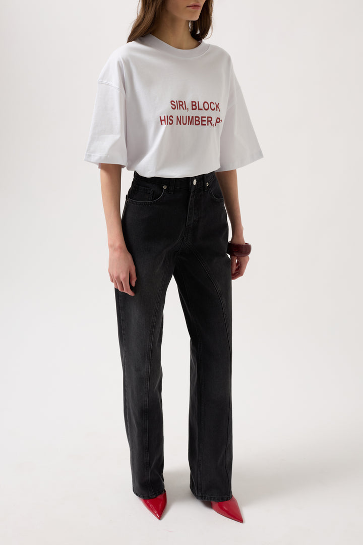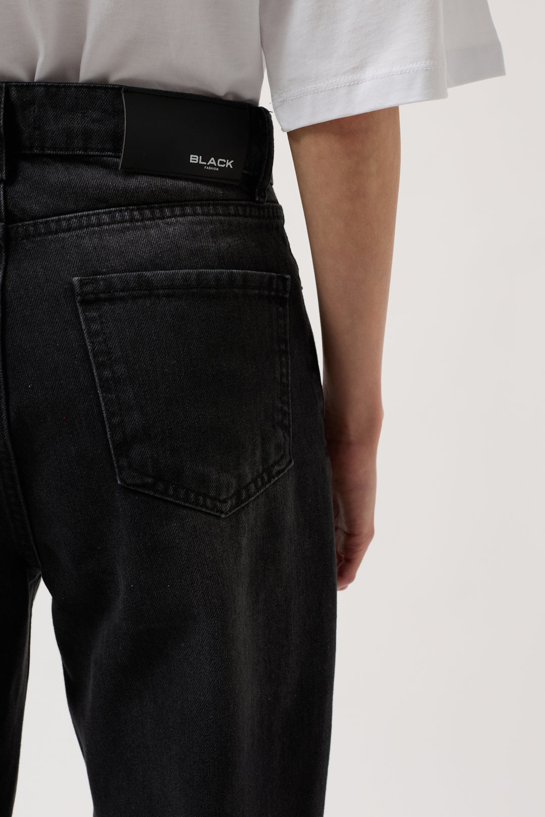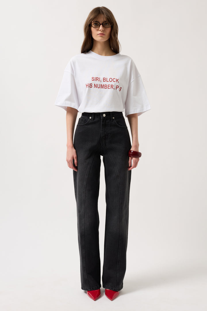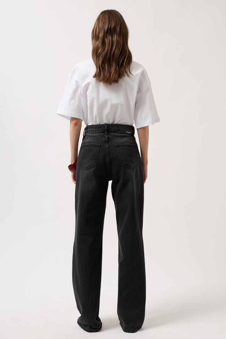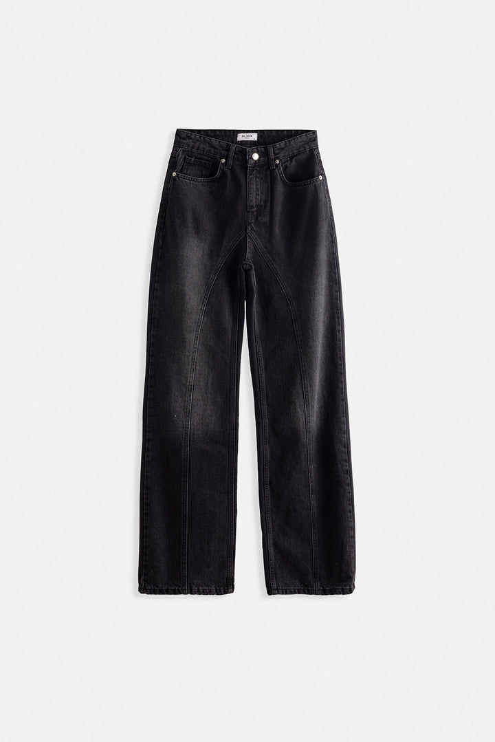 Dikiş Detay Geniş Paça Siyah Jean