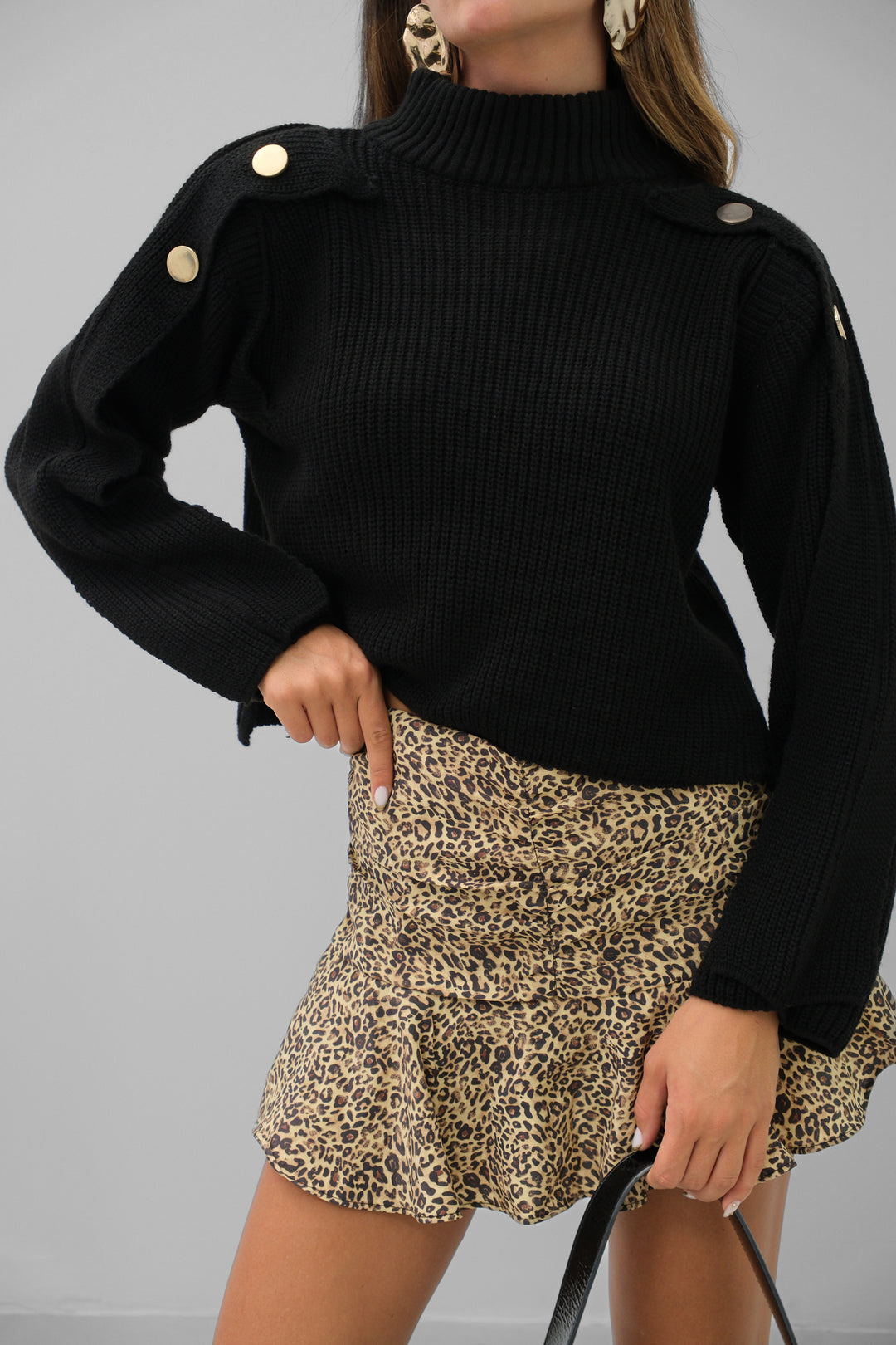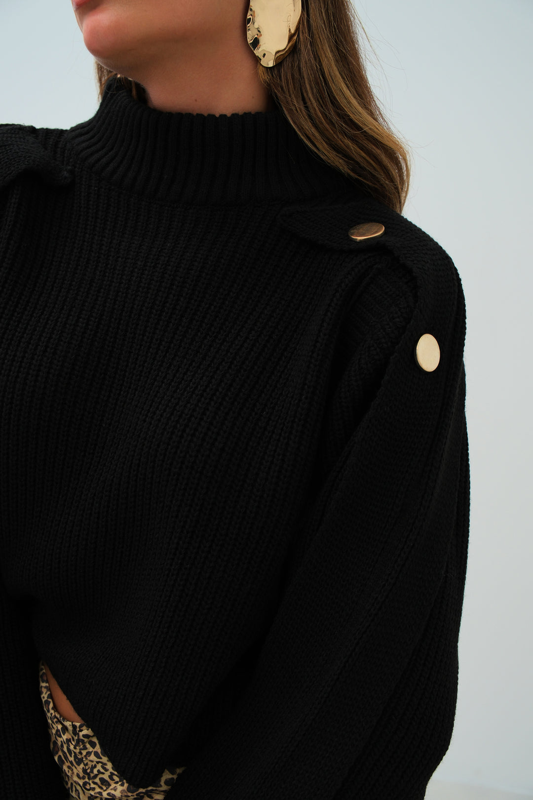 Düğme Detay, Uzun Kollu, Aksesuar Detaylı, Oversize, Kazak