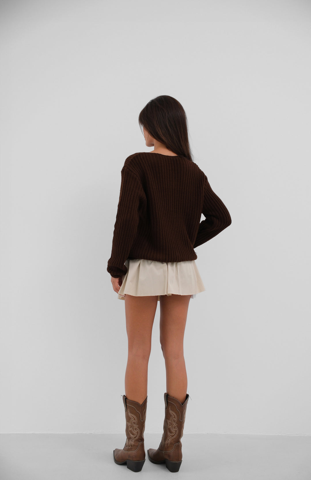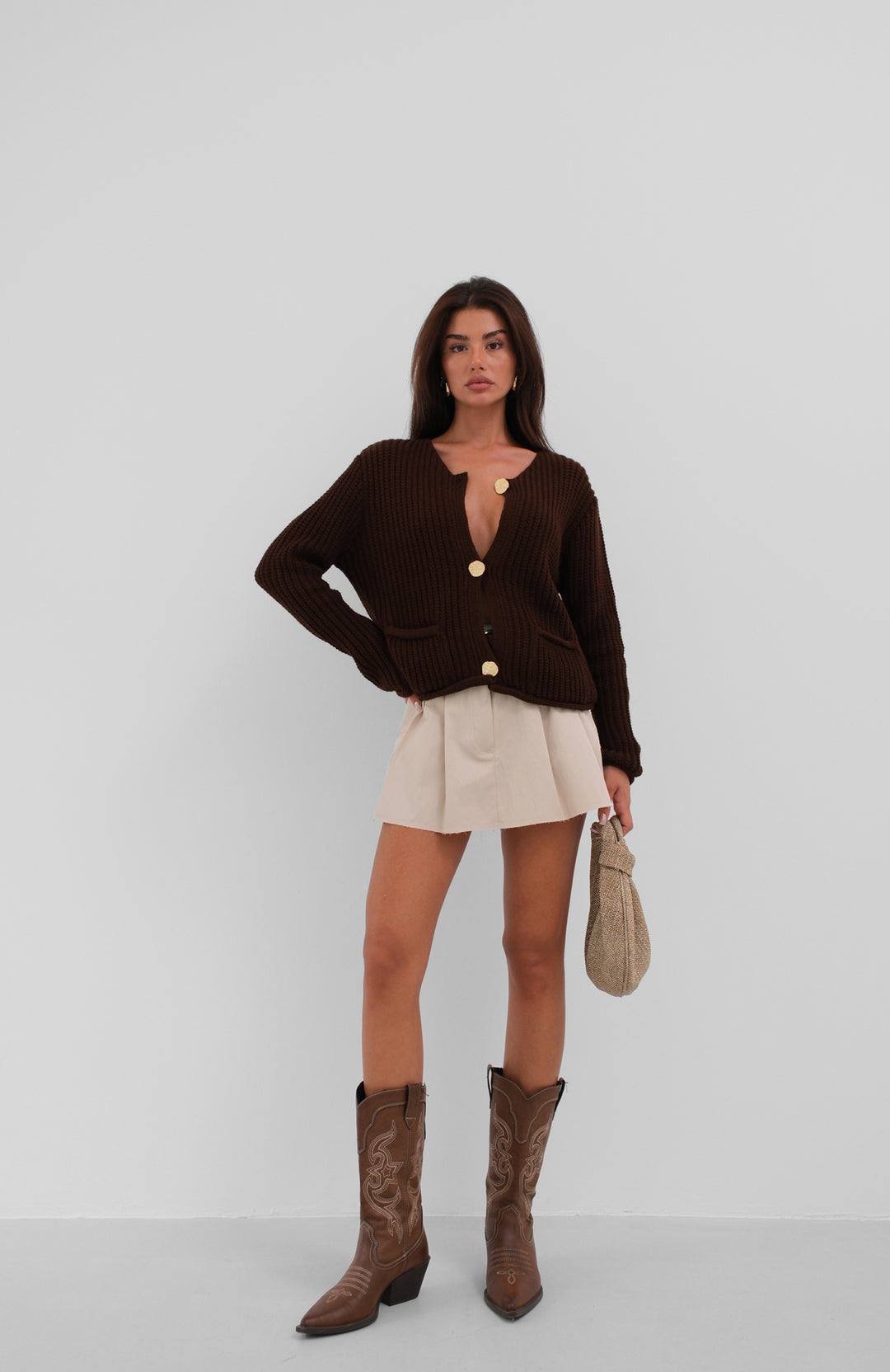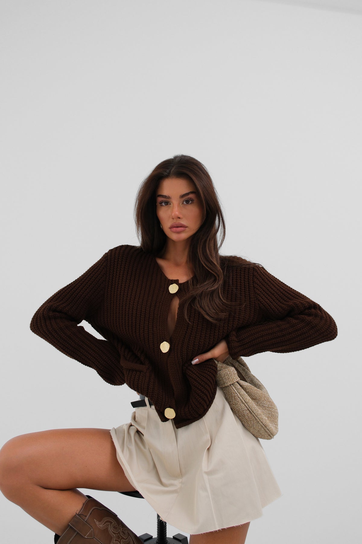Düğme Detaylı Oversize Kahverengi Triko Hırka