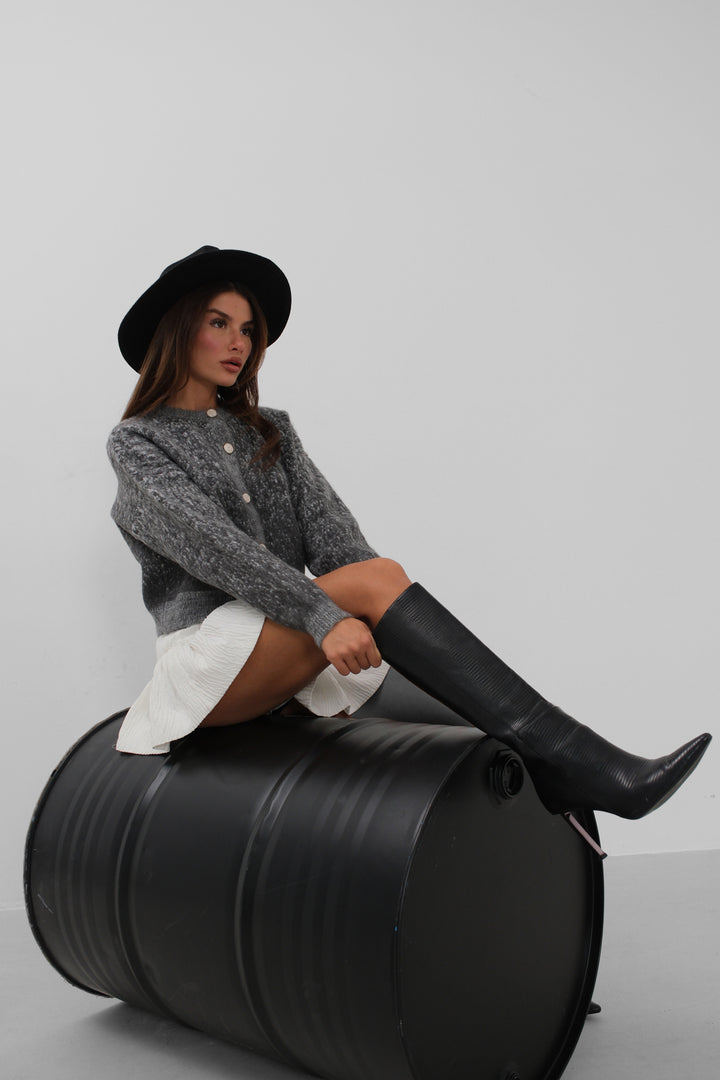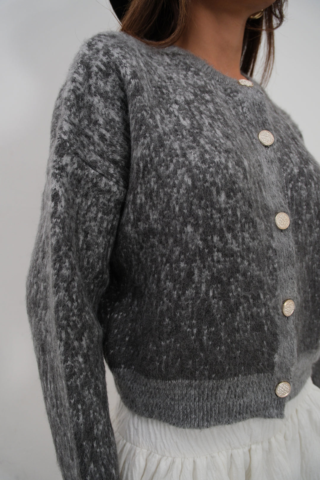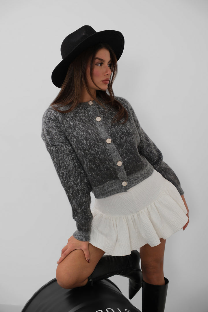 Kırçıllı, Önü Düğmeli, Crop Triko Hırka