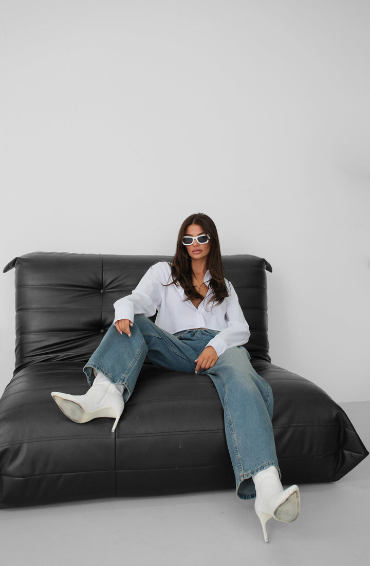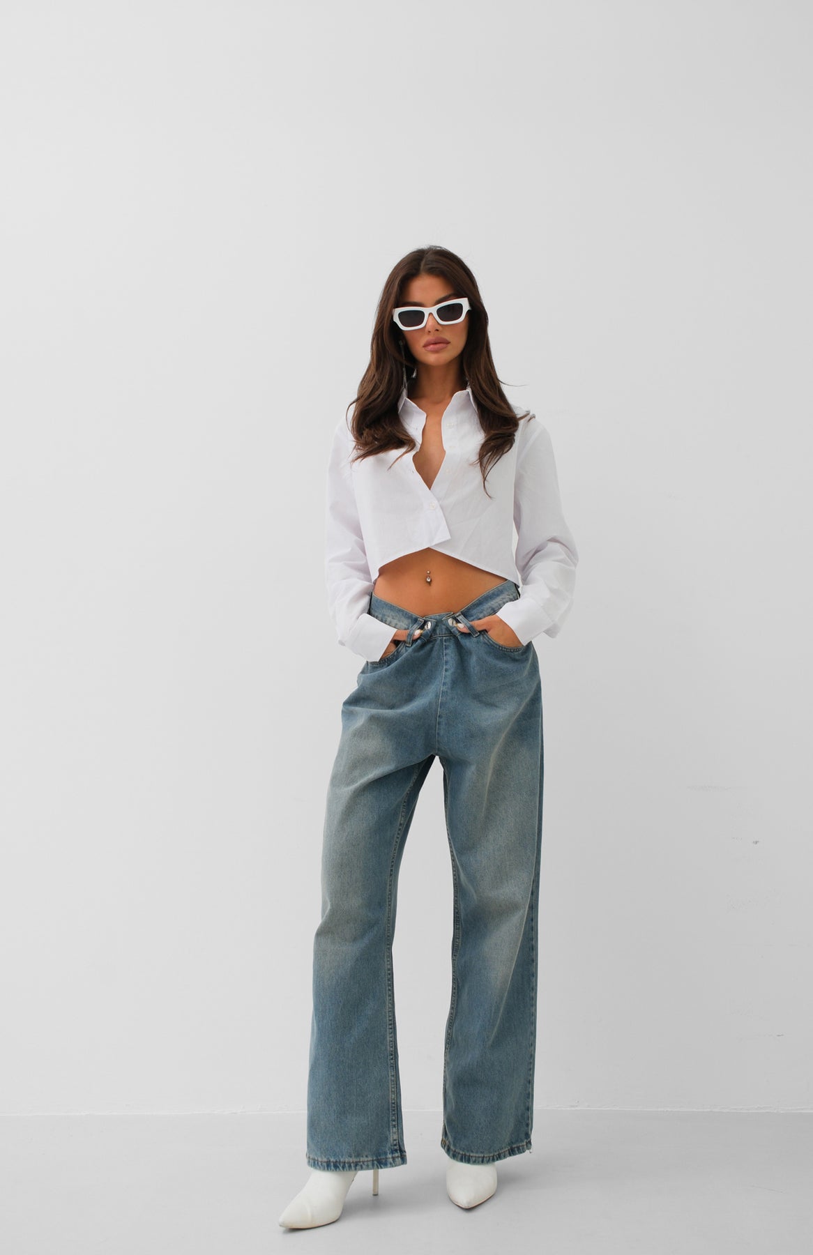 Düşük Bel, Beş Cepli, Ekstra Uzun, Geniş Paça, Fermuarlı ve Metal Düğmeli, Çift Düğmeli Wide Leg Jean