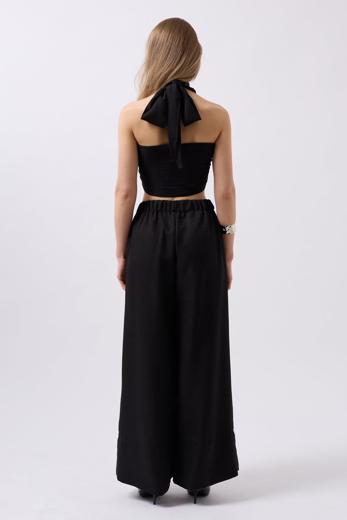 Düşük Bel Oversize Keten Siyah Pantolon