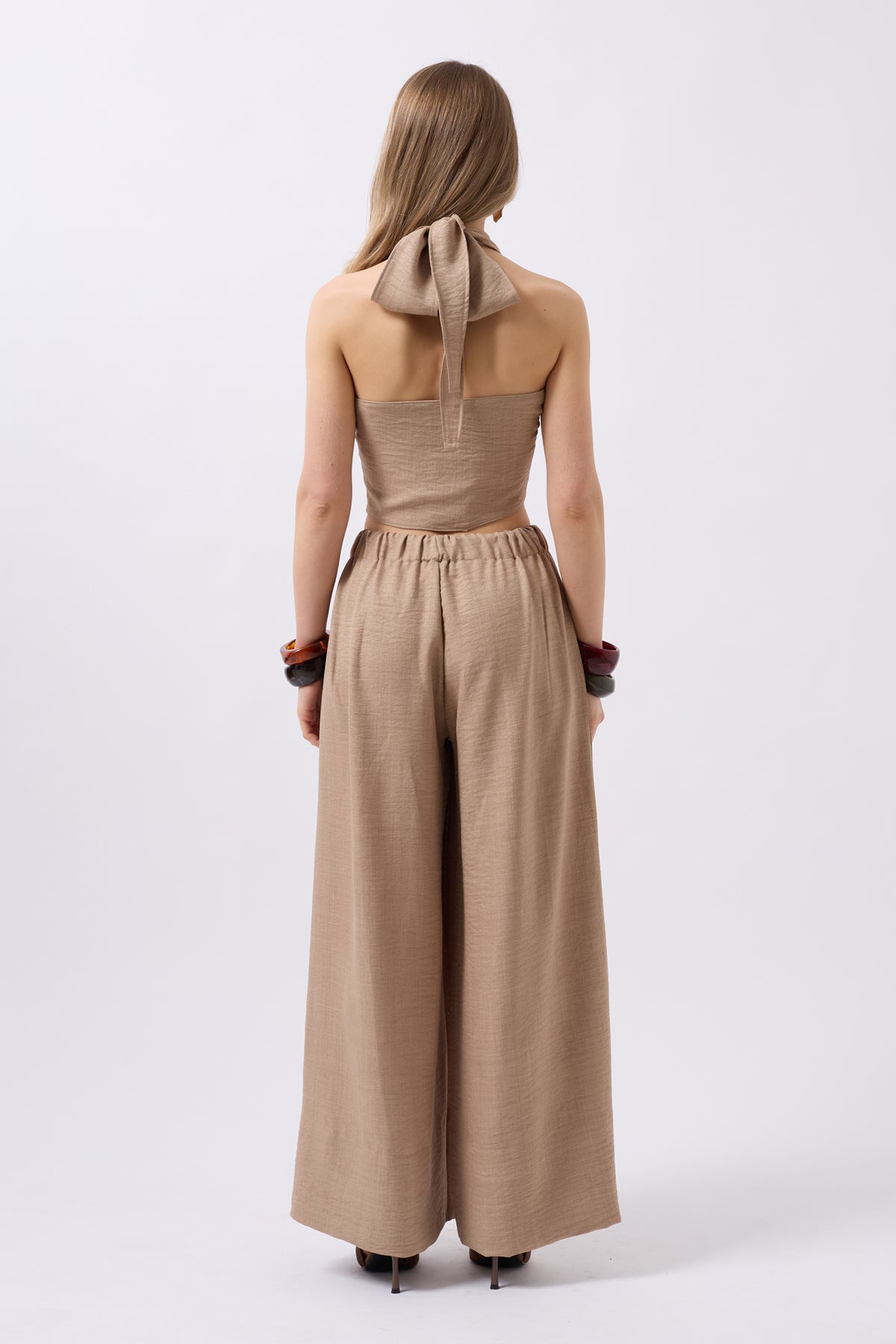 Düşük Bel, Bol Paça, Oversize, Keten Pantolon