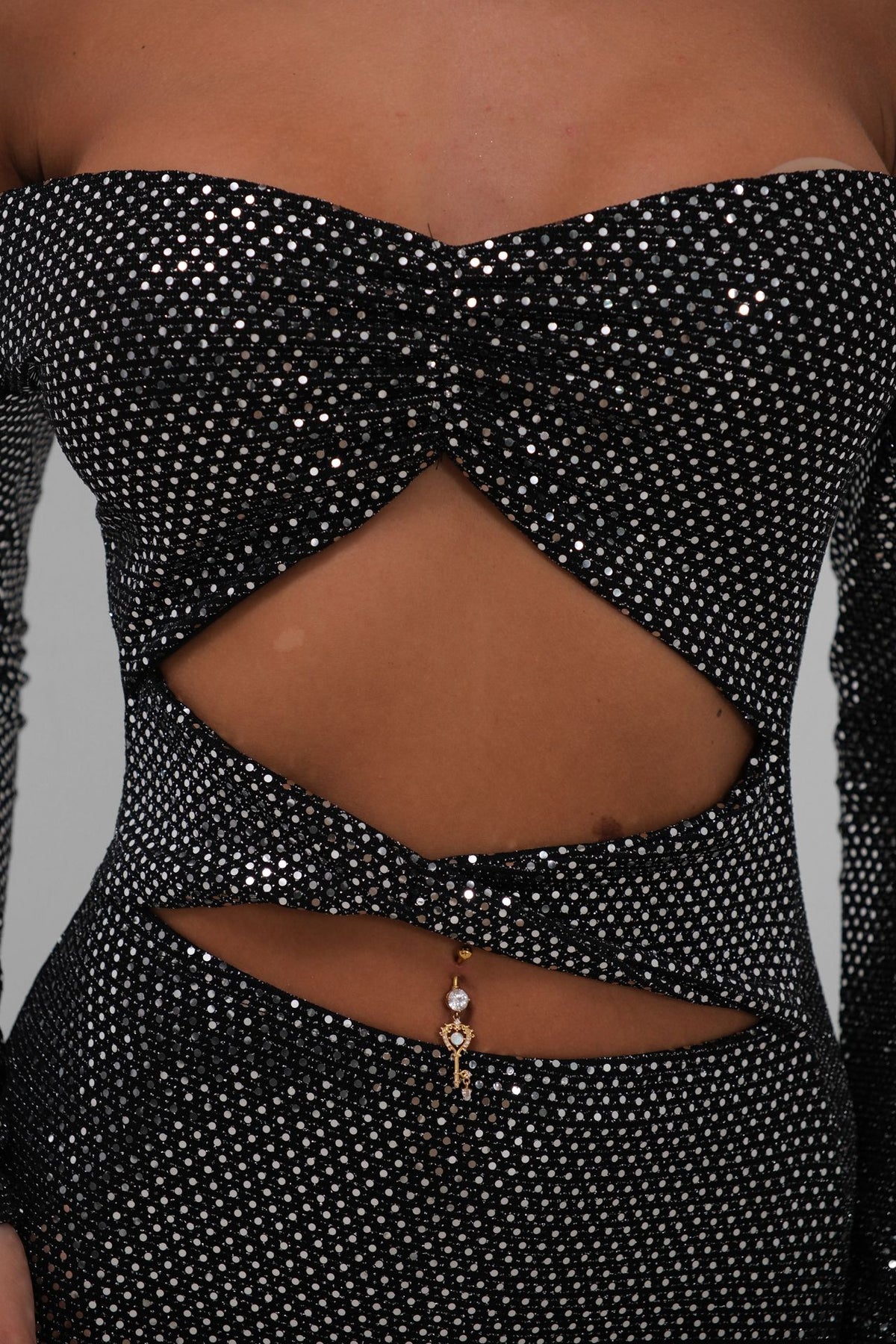 Simli, Maxi Elbise, Düşük Omuz, Bel ve Göbek Dekolte, Fashion, Yılbaşı Elbisesi