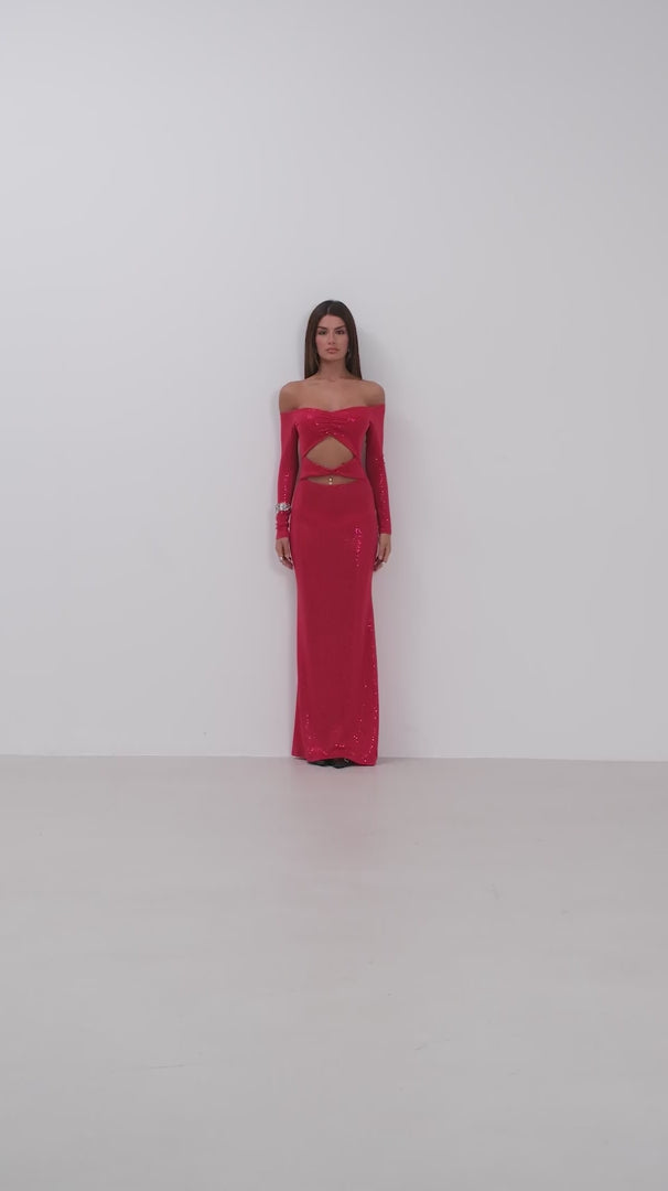 Simli, Maxi Elbise, Düşük Omuz, Bel ve Göbek Dekolte, Fashion, Yılbaşı Elbisesi