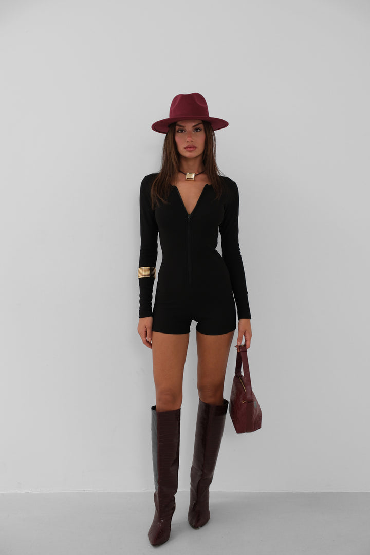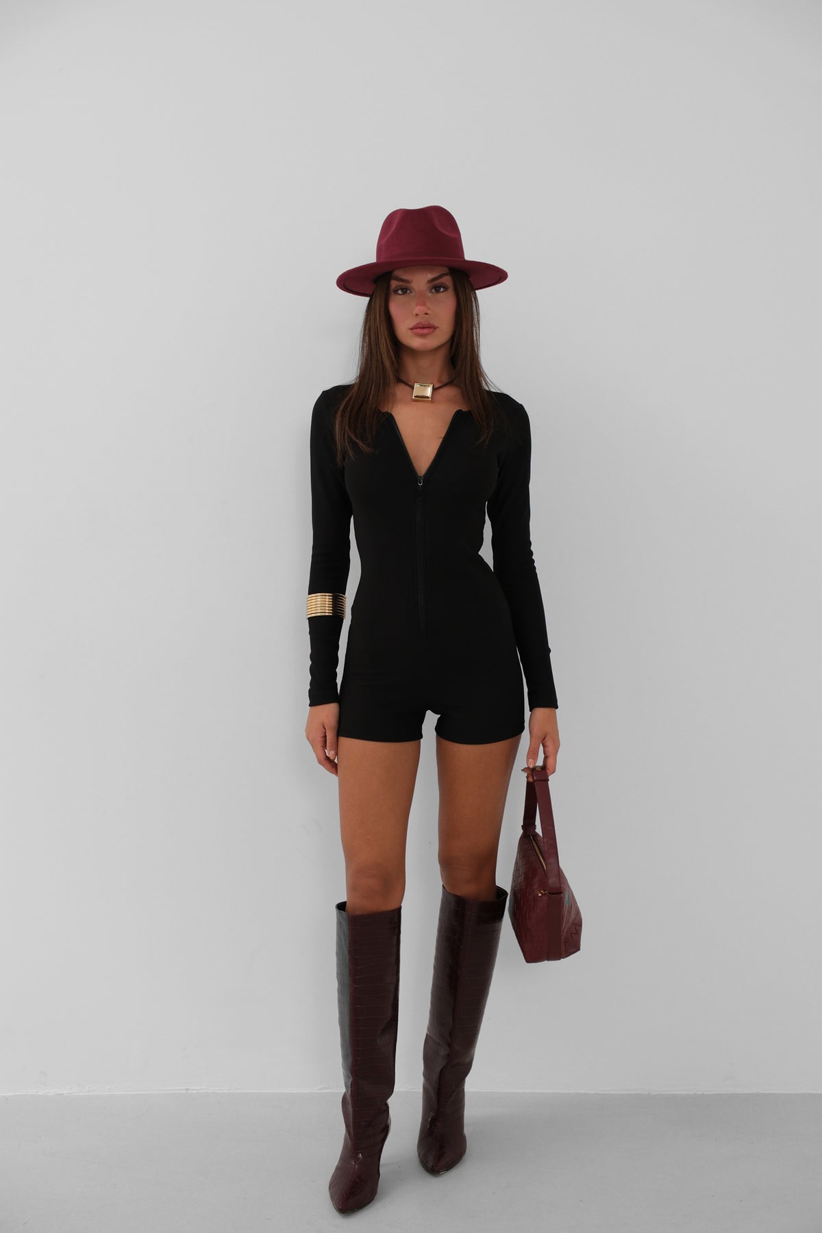 Şort Tulum, Fermuay Detay, Slim, Fashion, Likralı