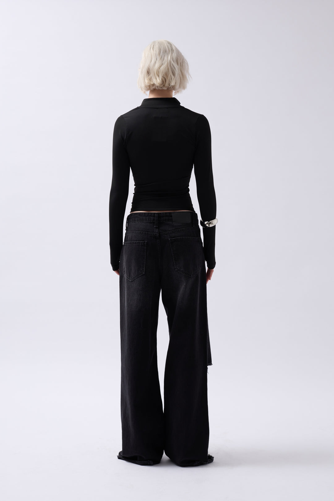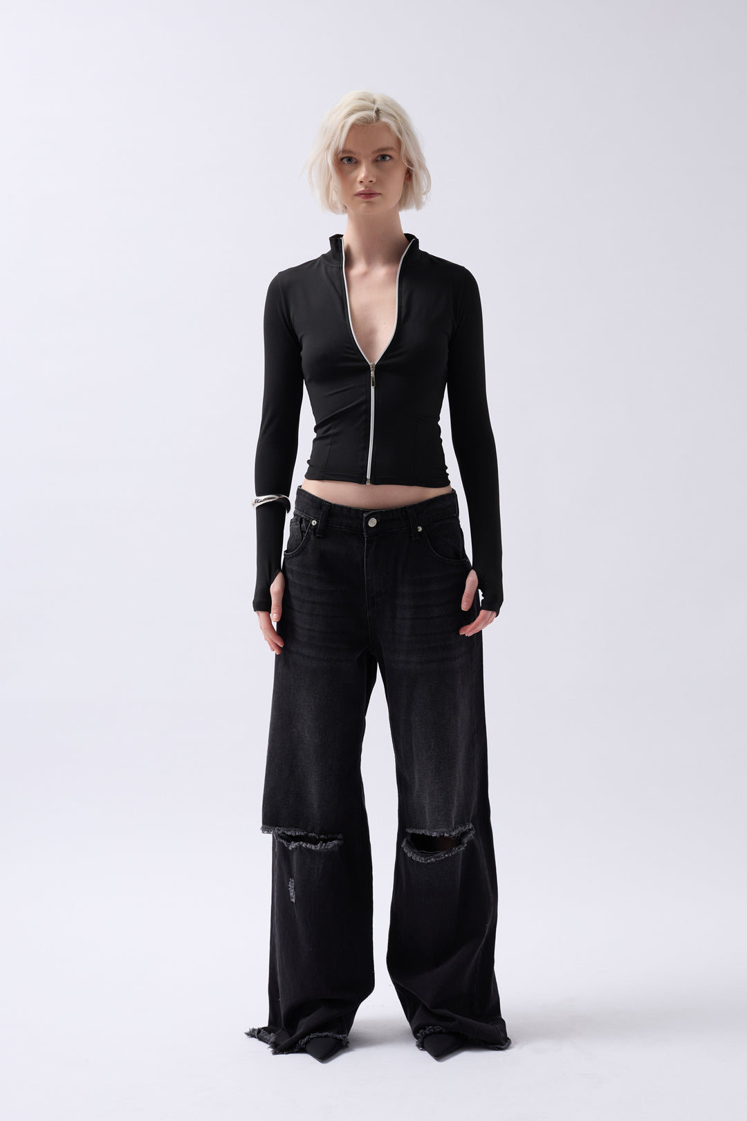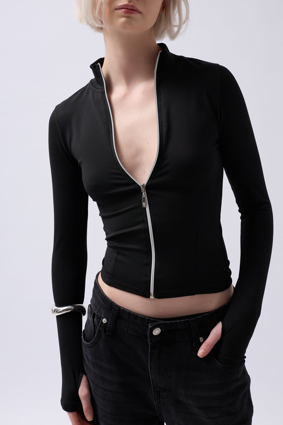 Parmak Geçme Detaylı Kol Ağzıı, Dar Kalıp, Esnek Ve Likralı Kumaş, Boydan Fermuarlı Bluz
