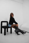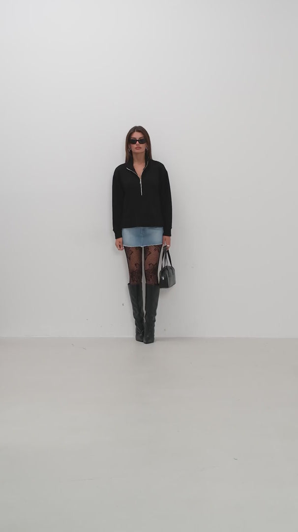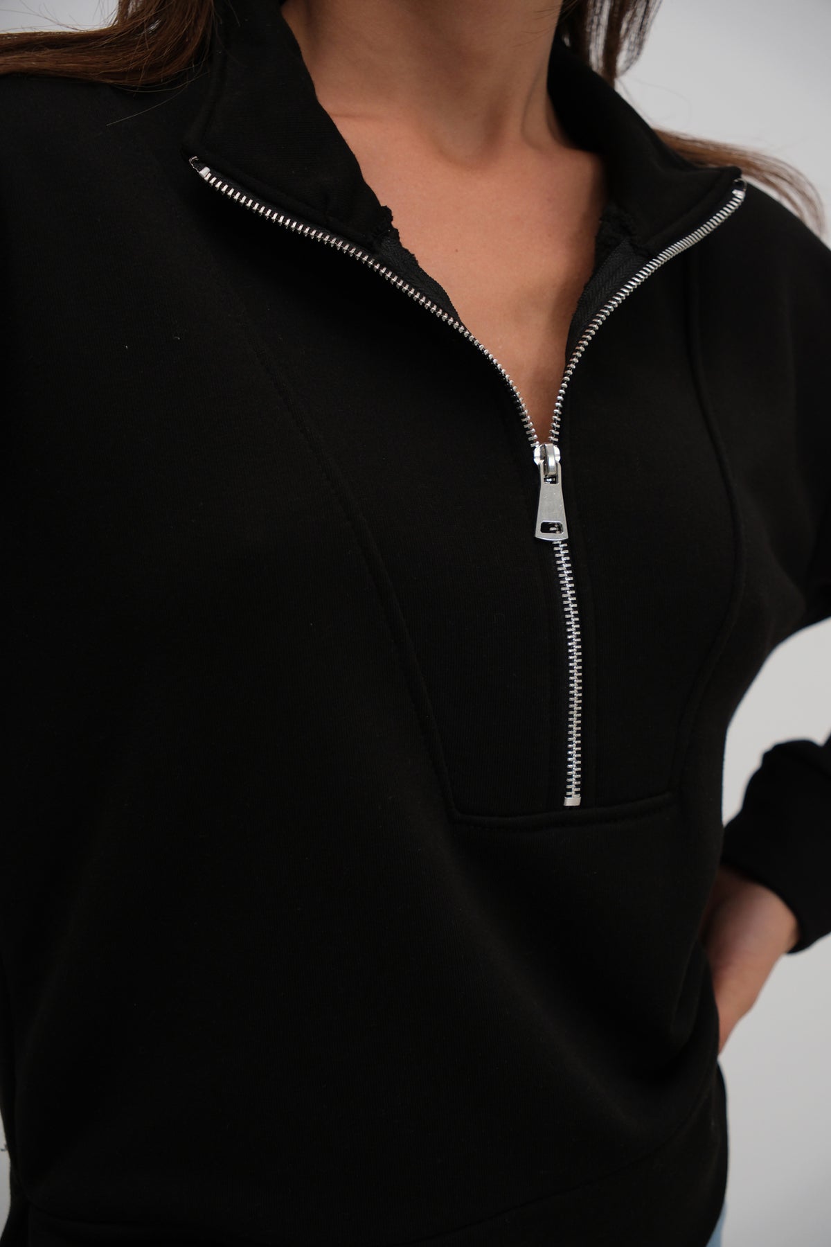 Fermuar ve Dikiş Detaylı Siyah Sweatshirt