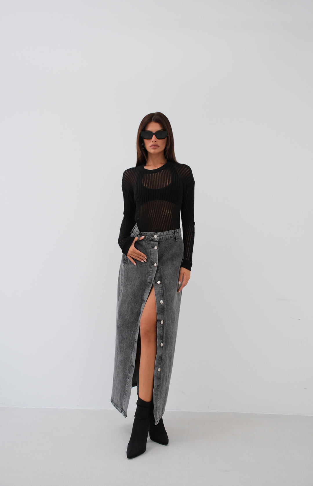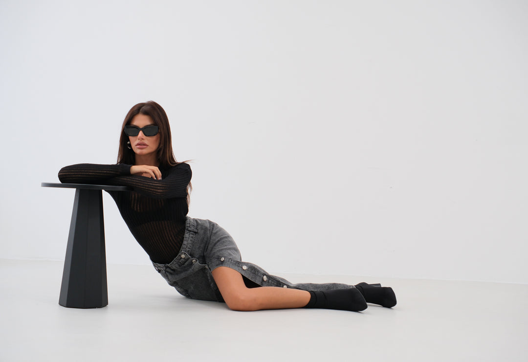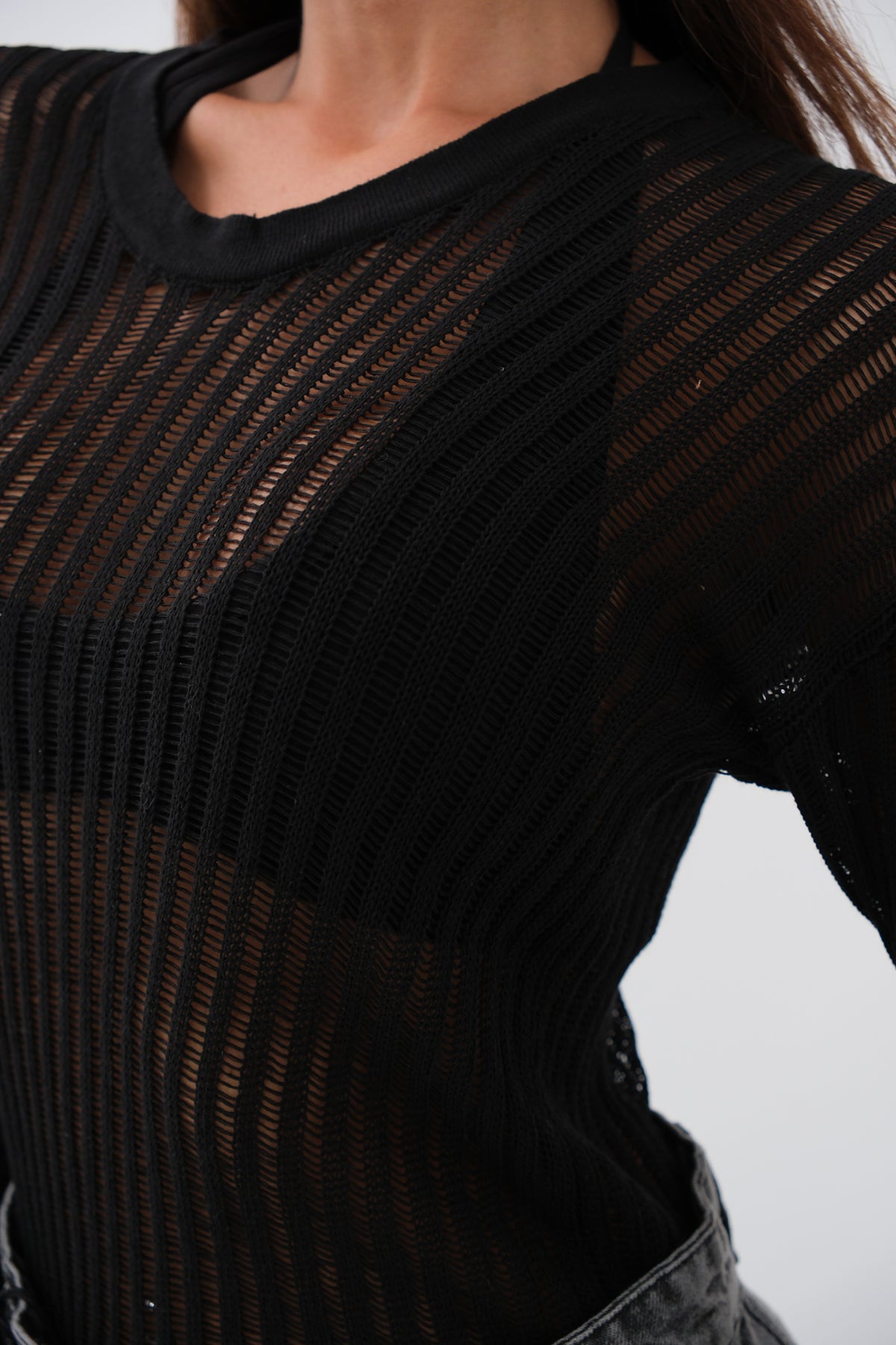 Fitilli Triko Örgü, Dokulu Bluz, Uzun Kol Bluz, Sıfır Yaka, Transparan Bluz
