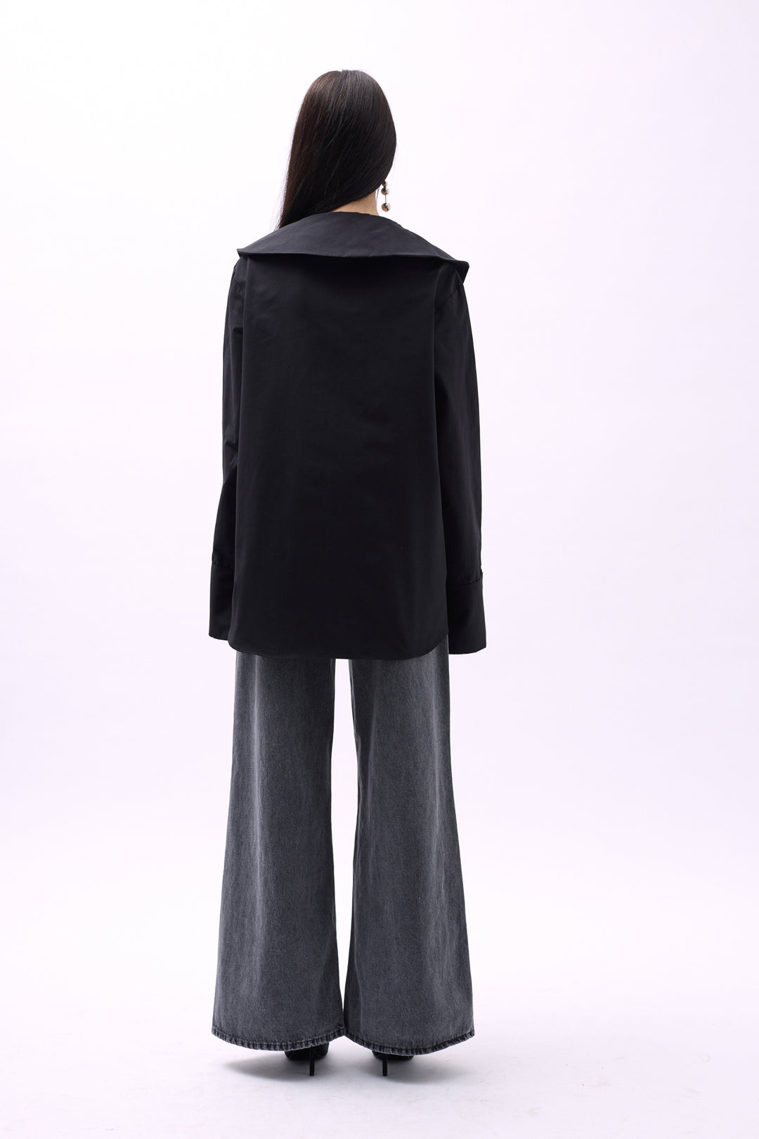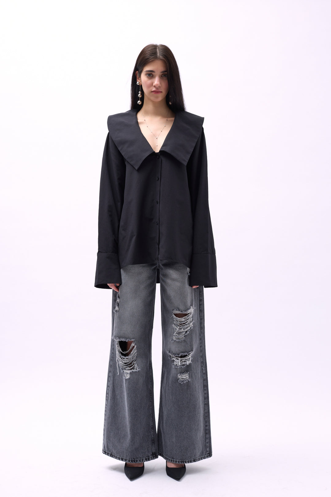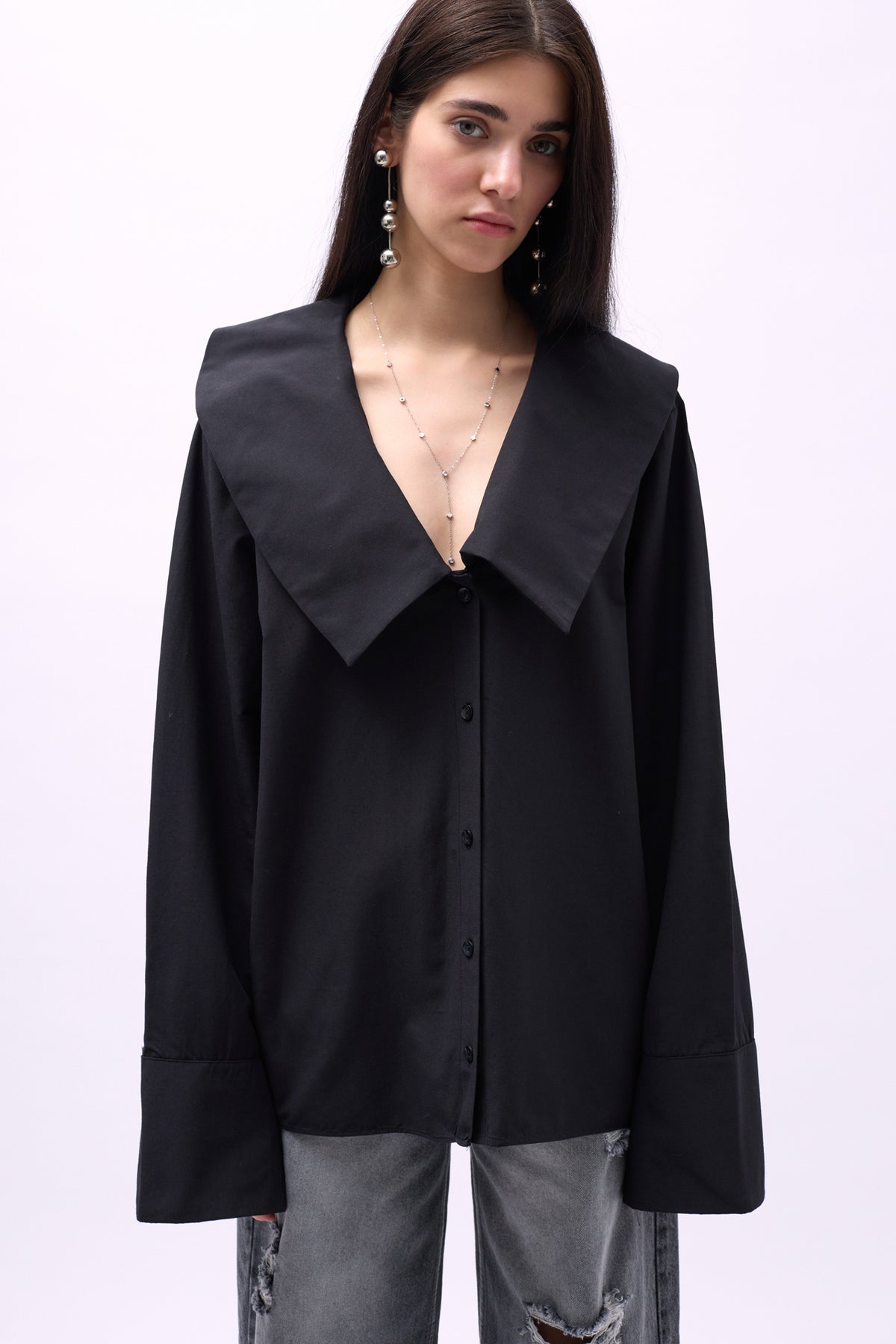 Büyük Yakalı, Düğmeli Ve Manşetli, Poplin Gömlek