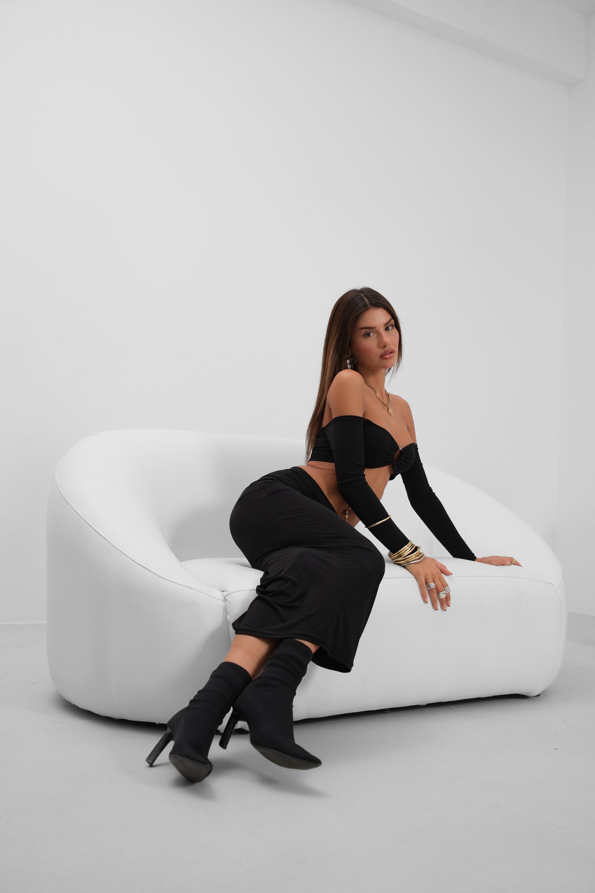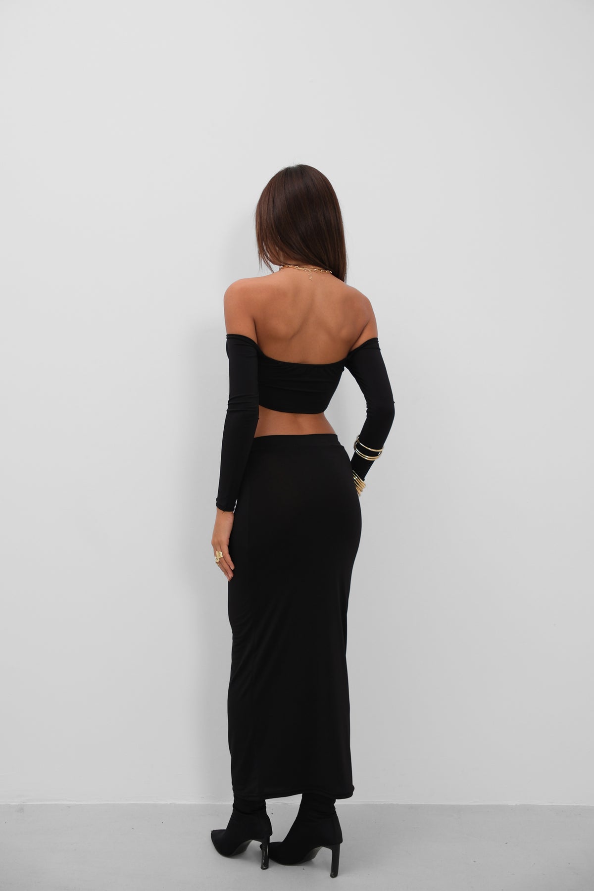 Takım, Halka Detay, Maxi Etek, Bluz, Omuz Detay, Bel Dekolte, Uzun Kollu