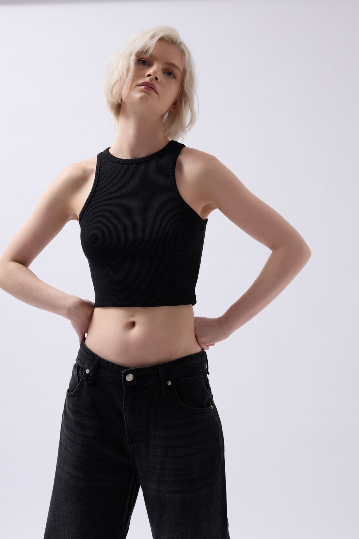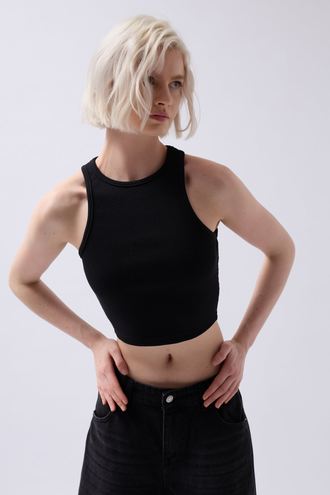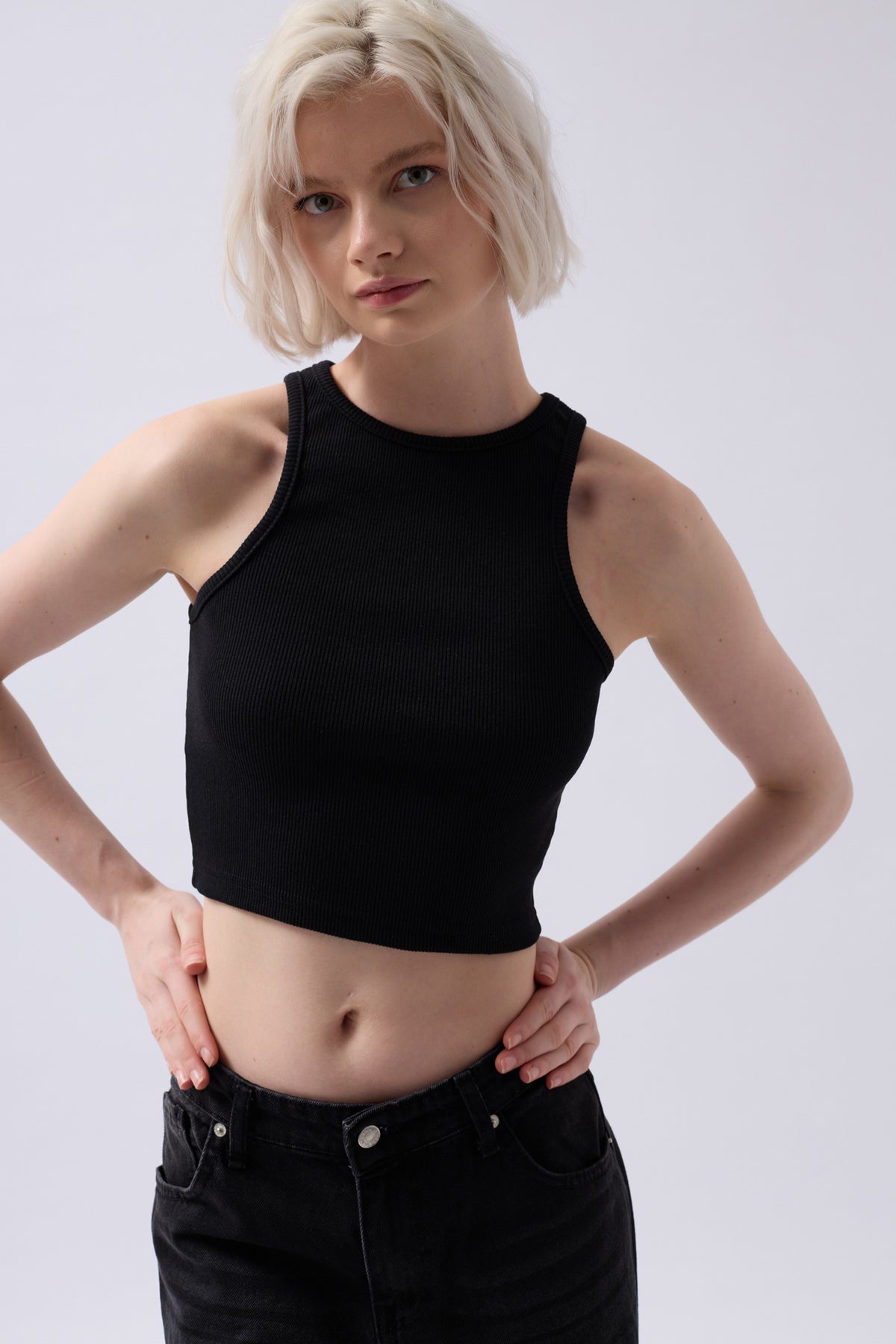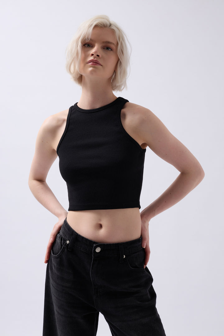 Halter Yaka Siyah Crop