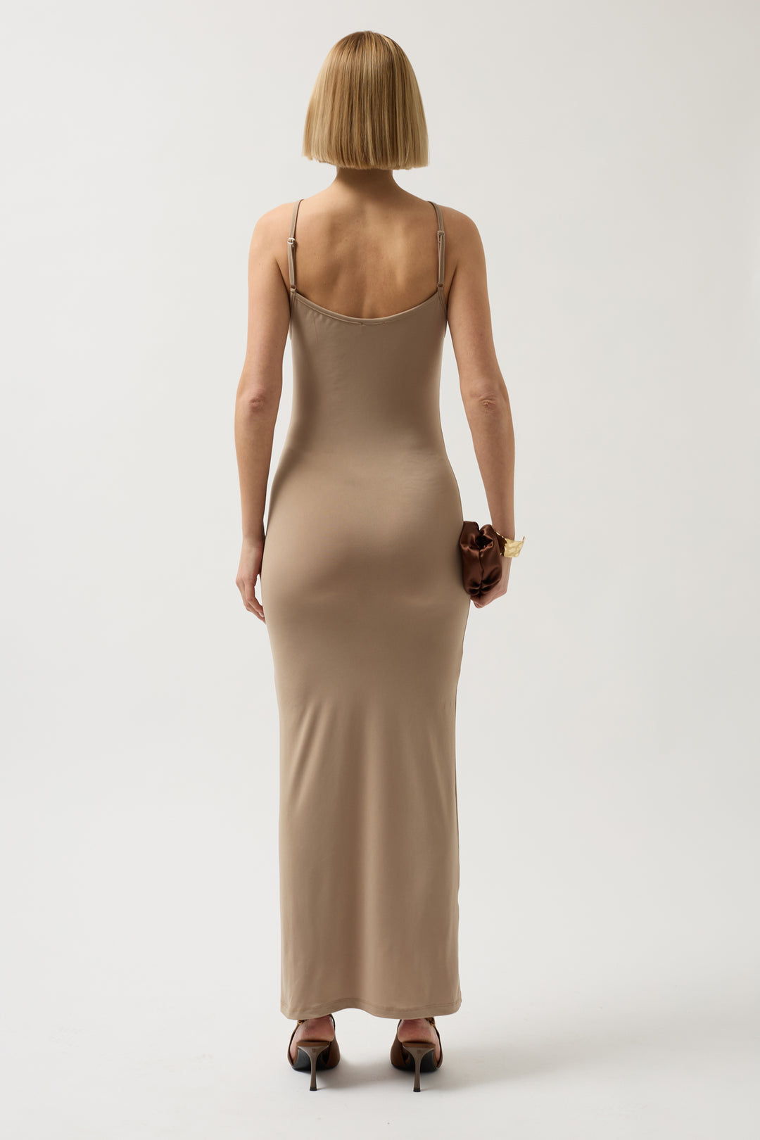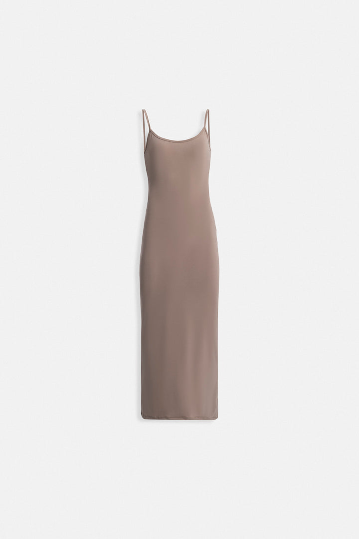 İnce Askılı Maxi Bej Elbise