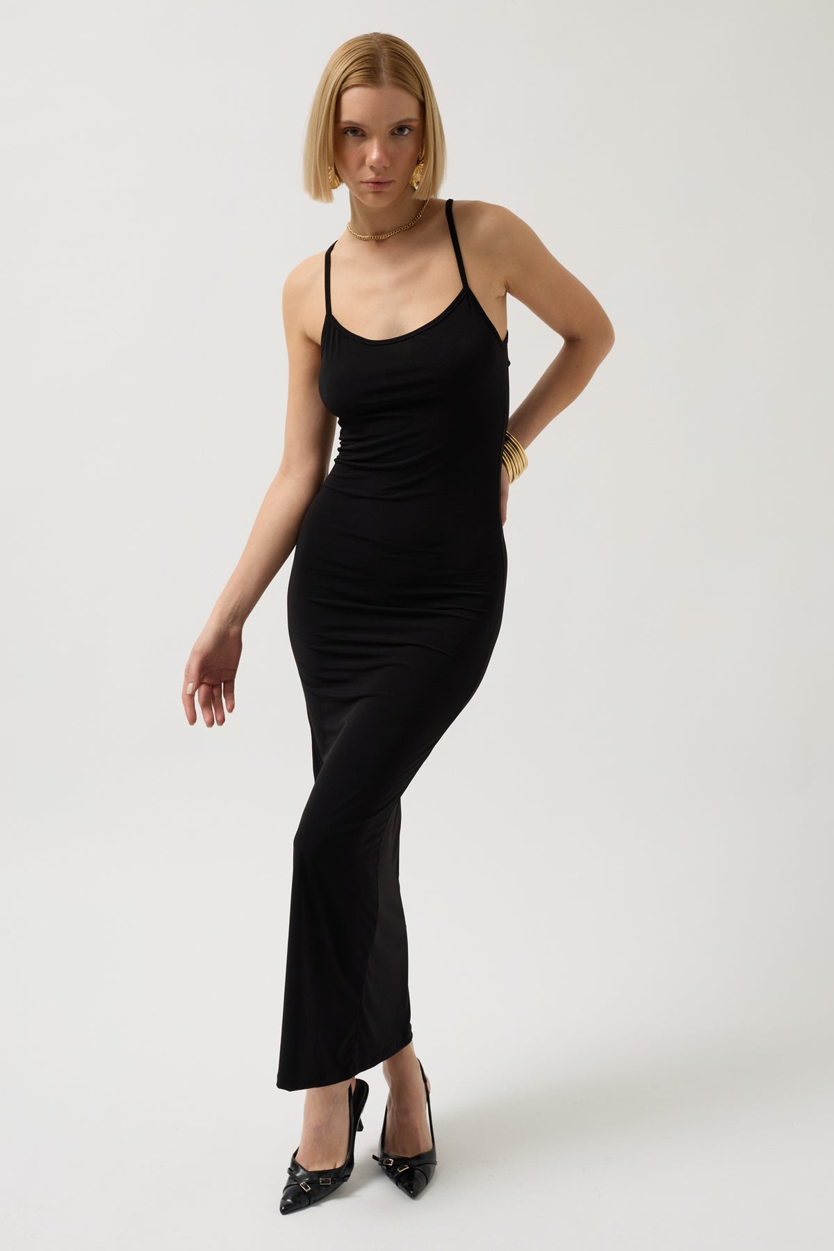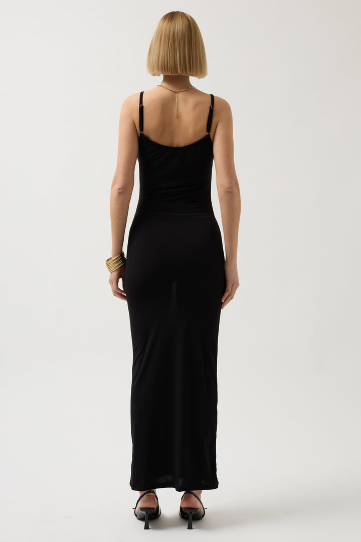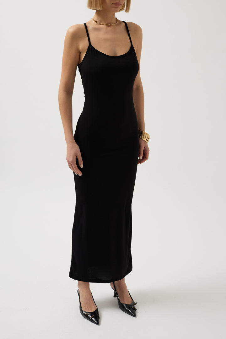 İnce Askılı Maxi Siyah Elbise