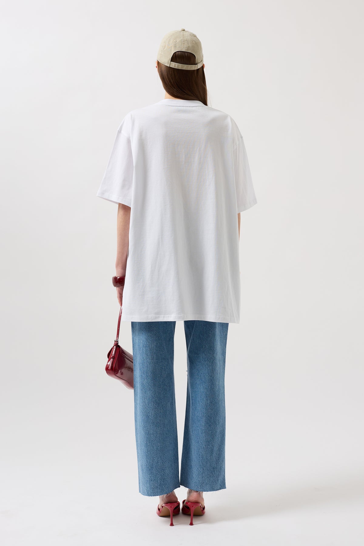 Likrasız Pamuklu Kumaş, Önü Baskılı, Geniş Form Kısa Kol Tişört