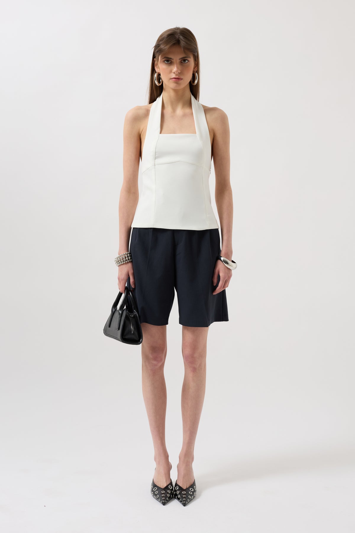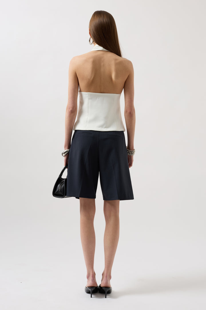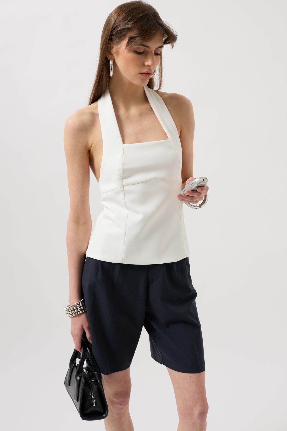 Yandan Gizli Fermuarlı, Çift Kat Astarlı, Crop Bluz