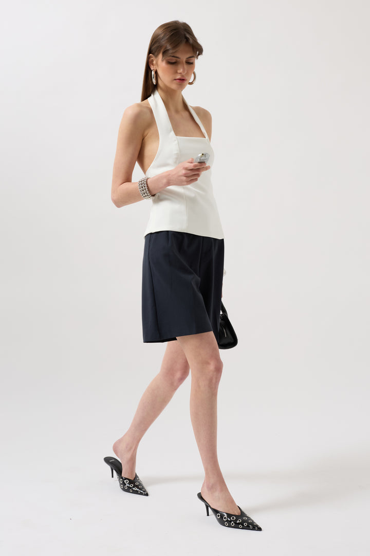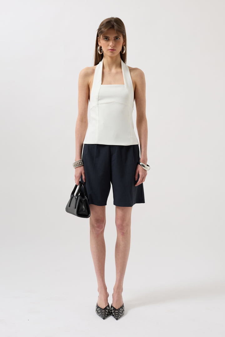 Kalın Askılı Crop Beyaz Bluz