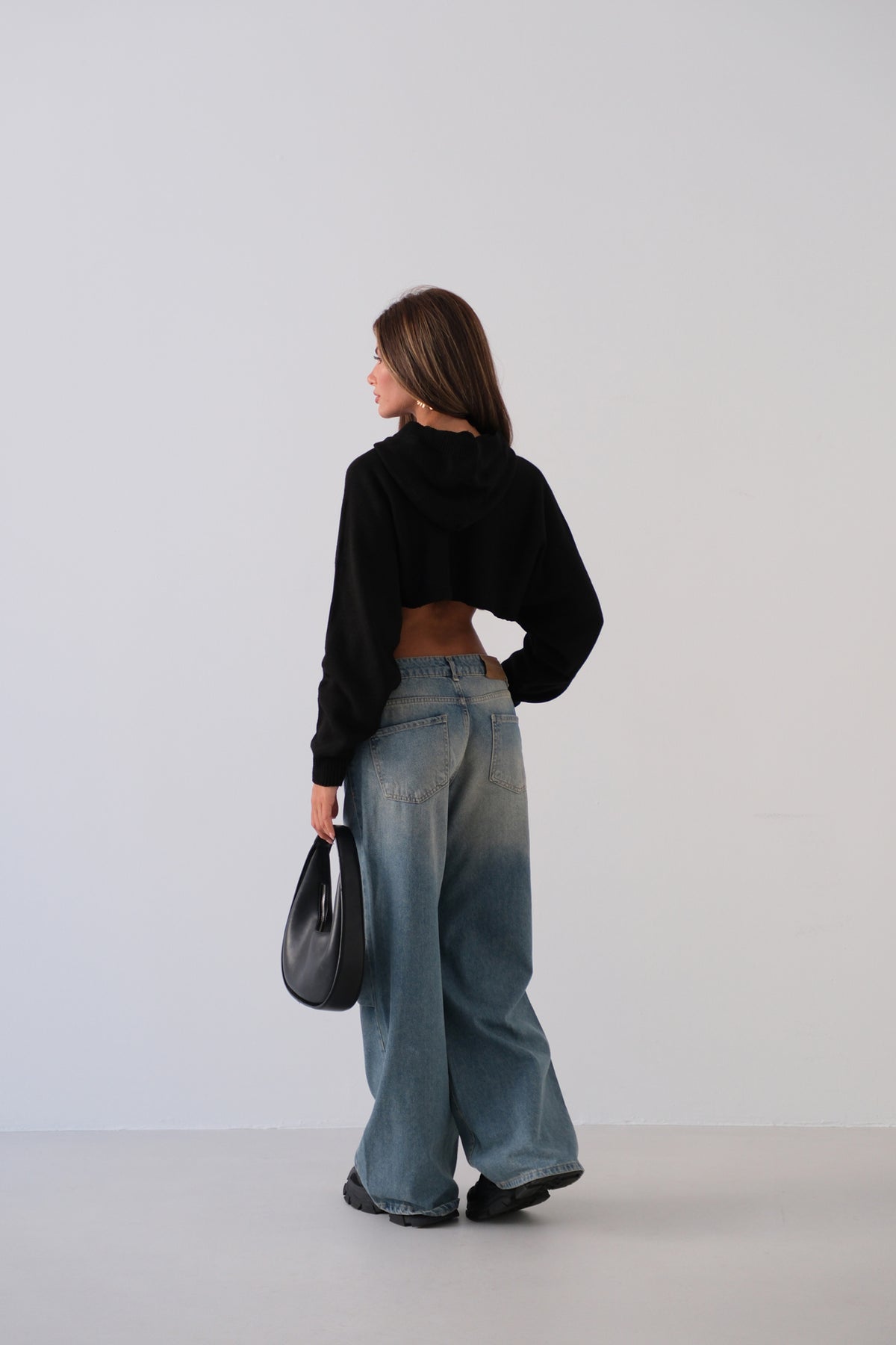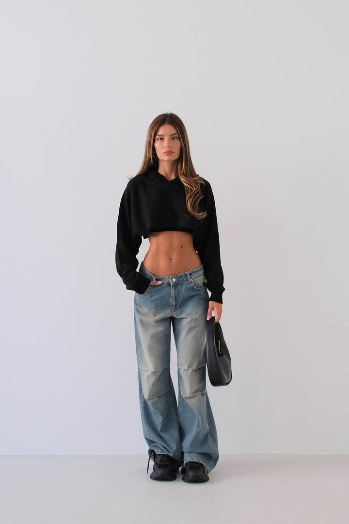 Kapüşonlu, Uzun Kollu, Crop, Sweatshirt