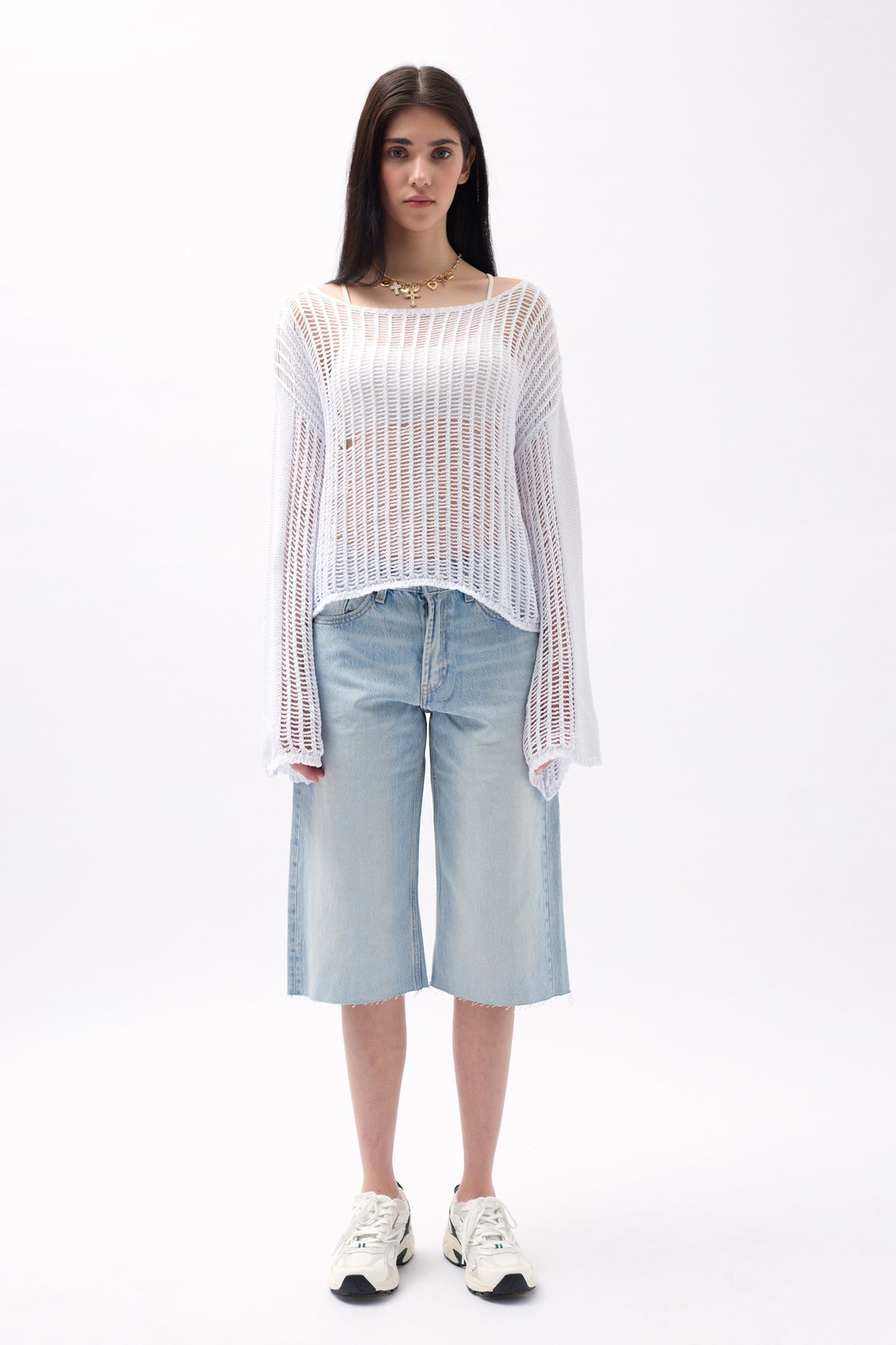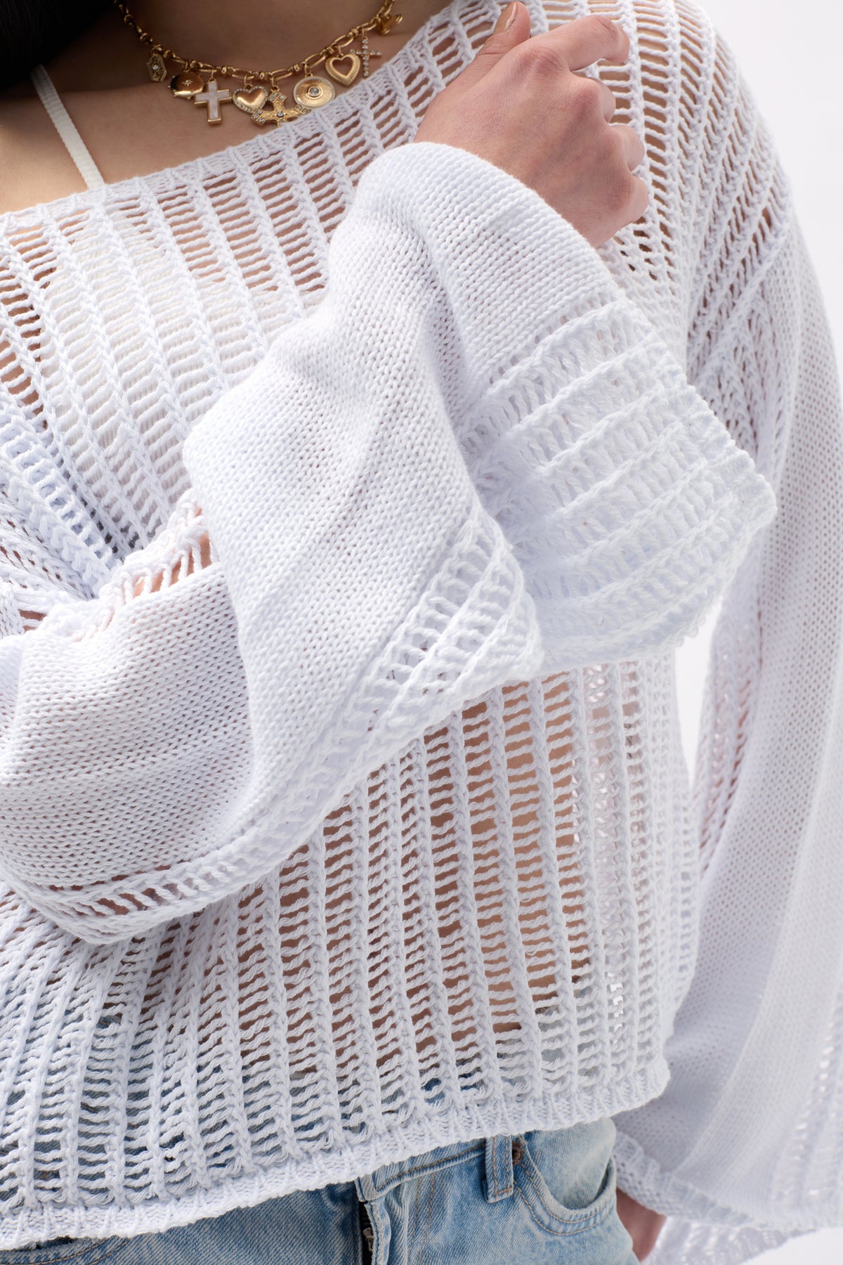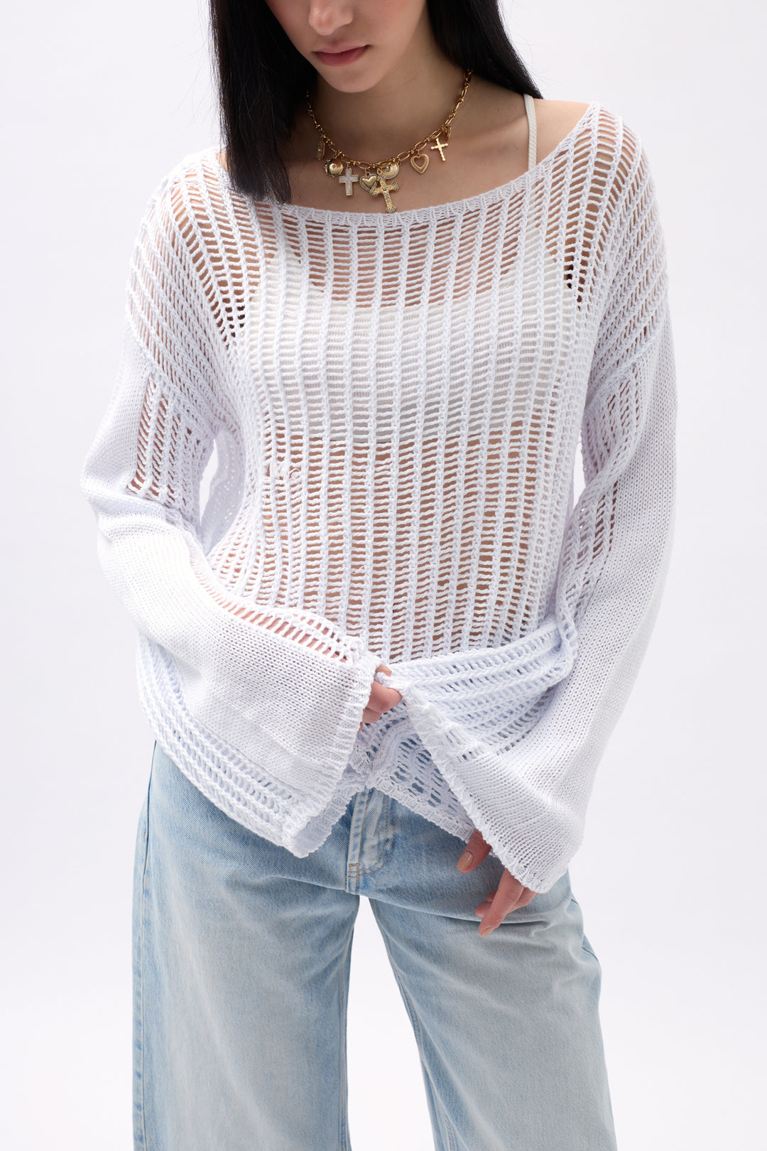 Kayık Yaka, Oversize, Transparan, Ajurlu Uzun Kollu, Bluz
