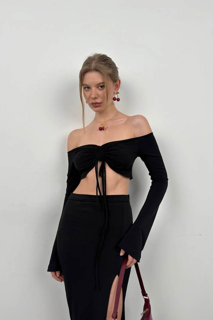 Kayık Yaka, İspanyol Kollu, Asansörlü Bluz