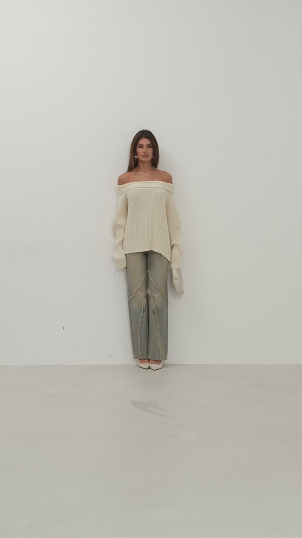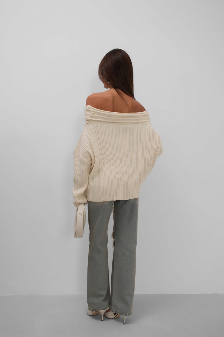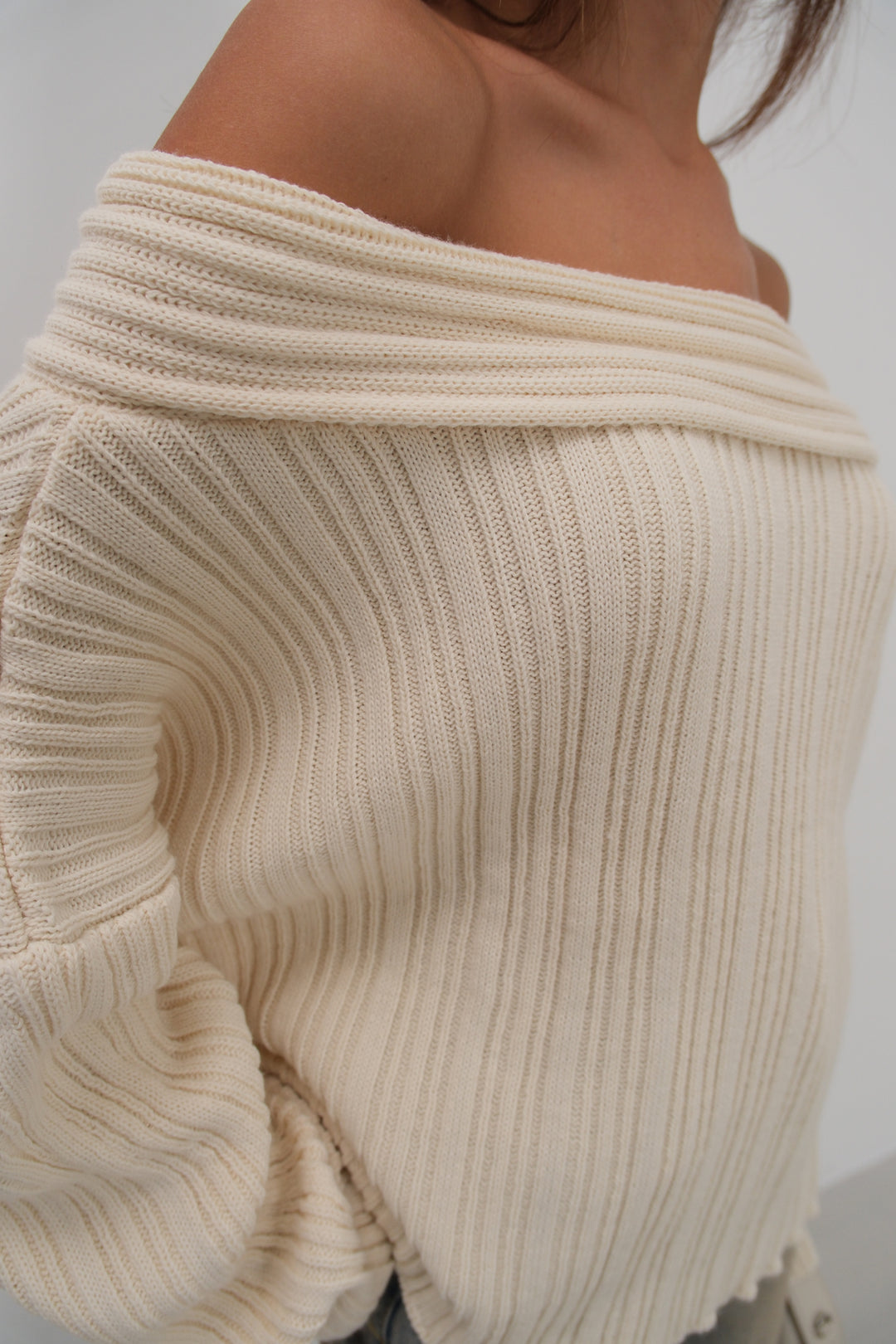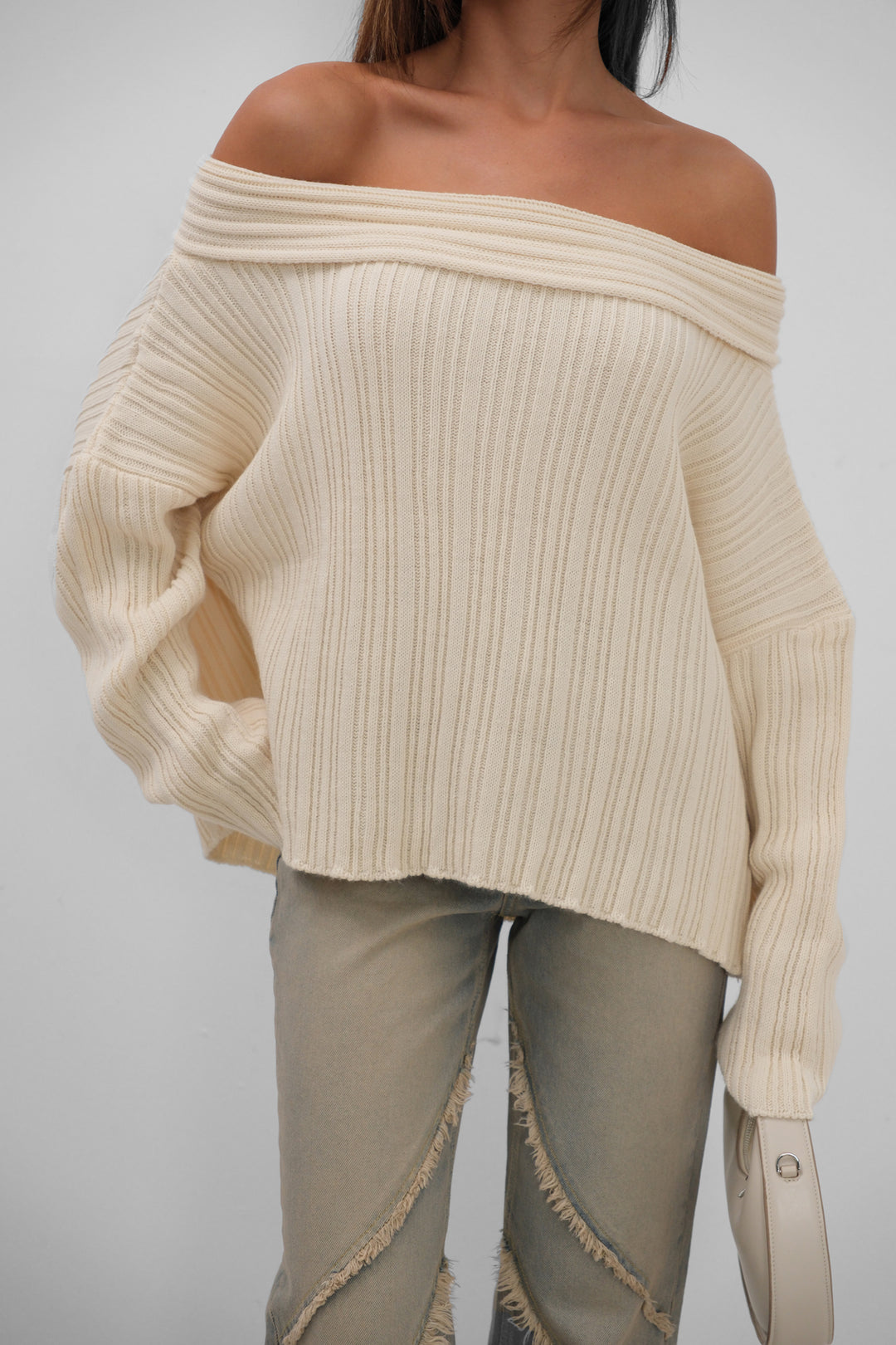 Uzun Kollu, Geniş Manşet, Madonna Yaka, Düşük Omuz, Bluz, Kazak, Fashion, Esnek, Rahat Kalıp